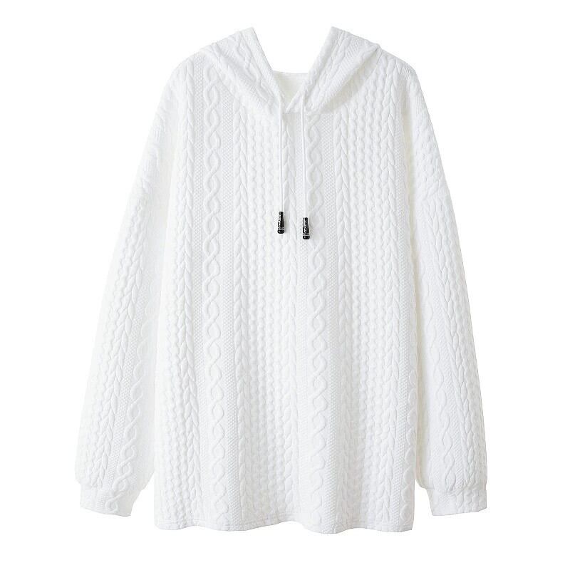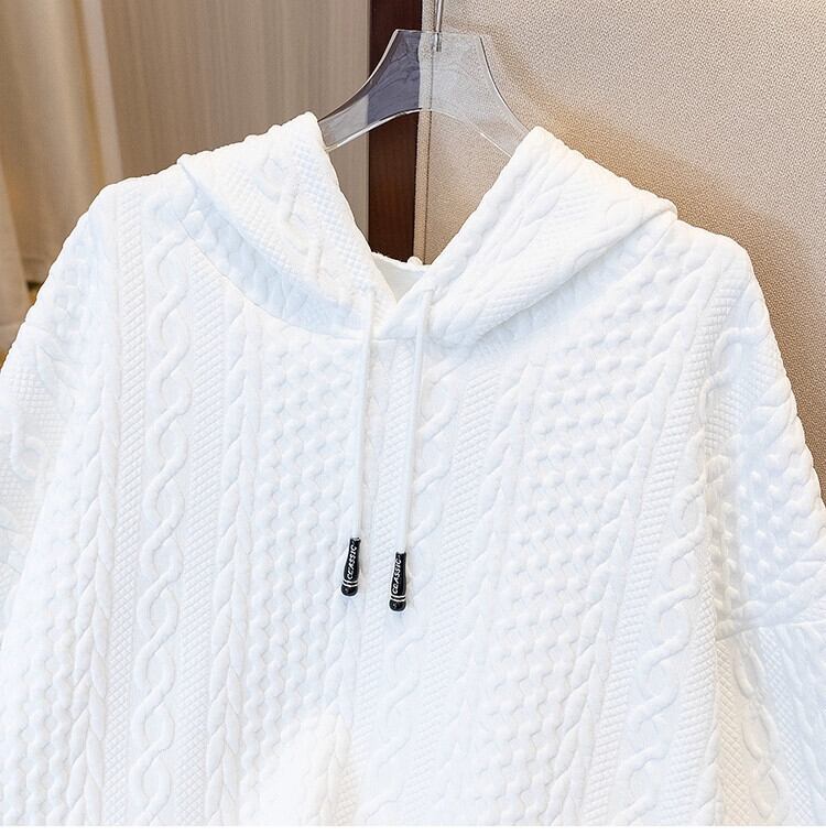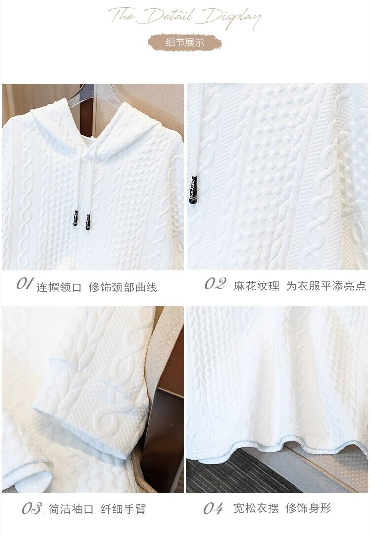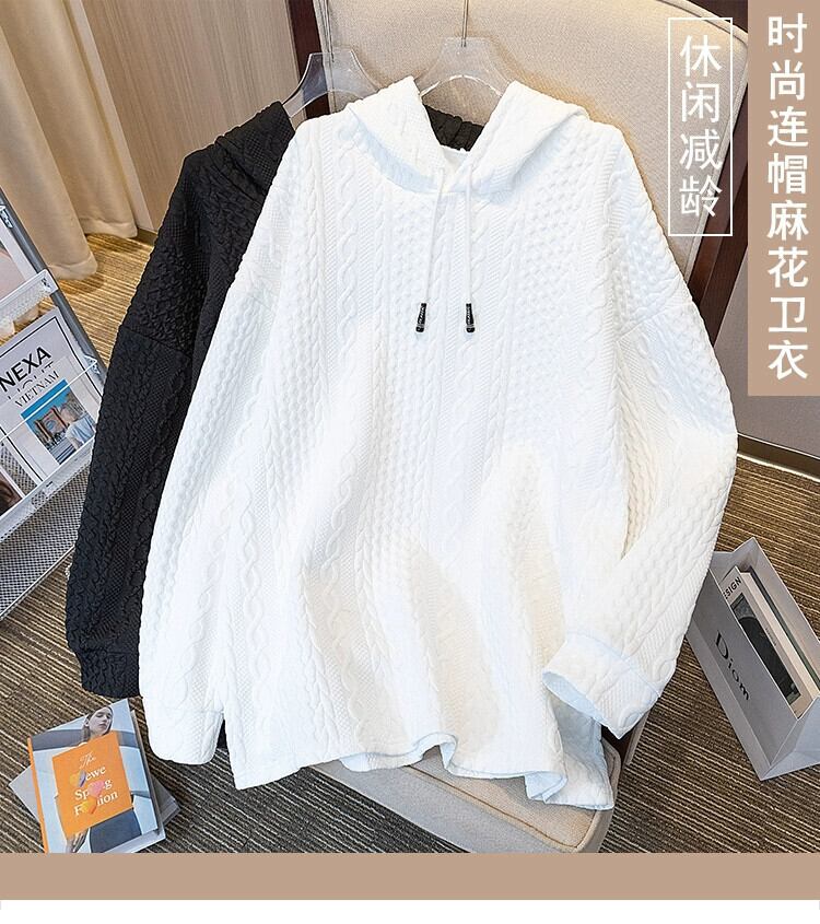 プラスサイズの婦人服ファット mm 春の新 2024 ソリッドカラー長袖フード付きスウェットシャツルーズカジュアル年齢削減痩身トップ ロング 大きめサイズ スプリング 春物 8884179950194919