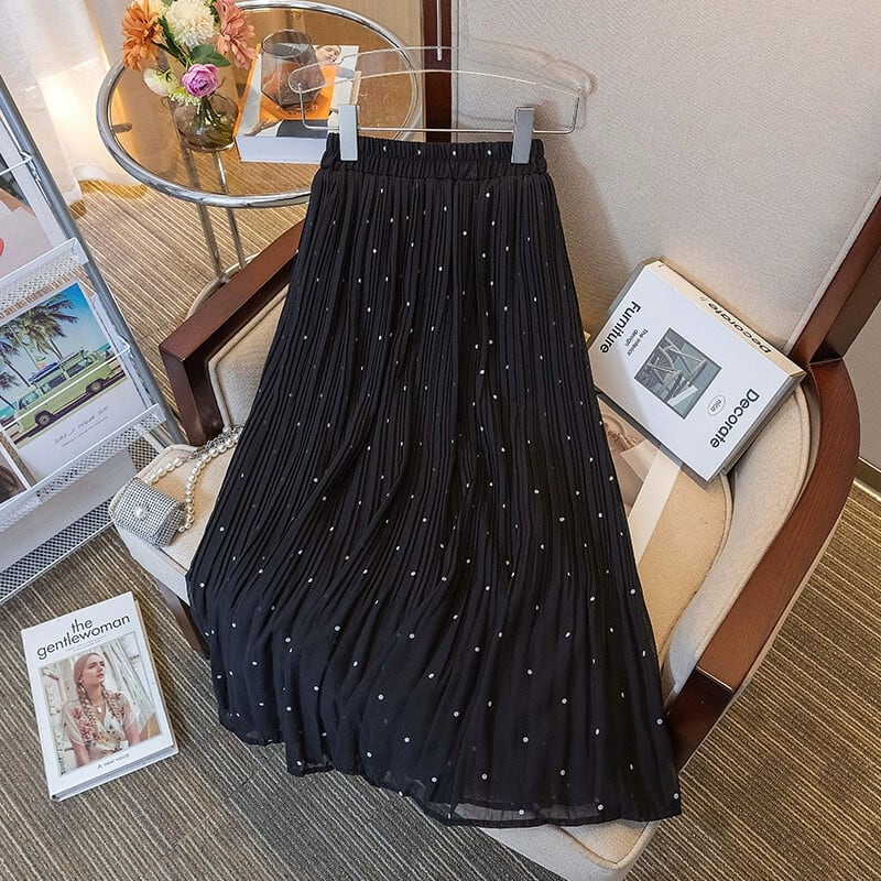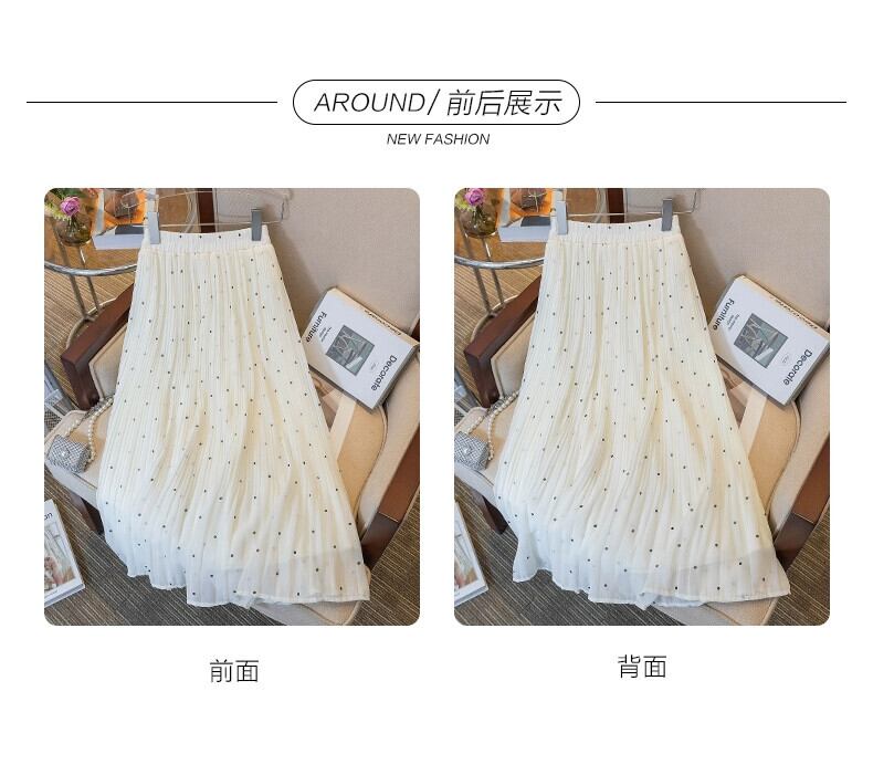 プラスサイズの婦人服ファットミリメートル夏新 2024 アメリカンファッション水玉ハイウエストプリーツガーゼスカート A ラインスカート ハイウェスト 大きめサイズ サマー 夏物 Aライン 8884157899020982