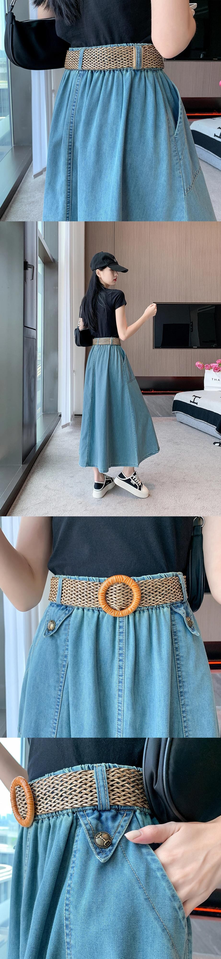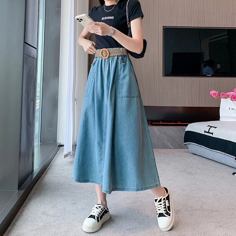 プラスサイズの女性の脂肪 mm 春の新スタイル 2024 シックなレトロなヒップカバー A ラインスカートニッチデニム年齢軽減スカート 大きめサイズ スプリング 春物 Aライン 8884121643062471