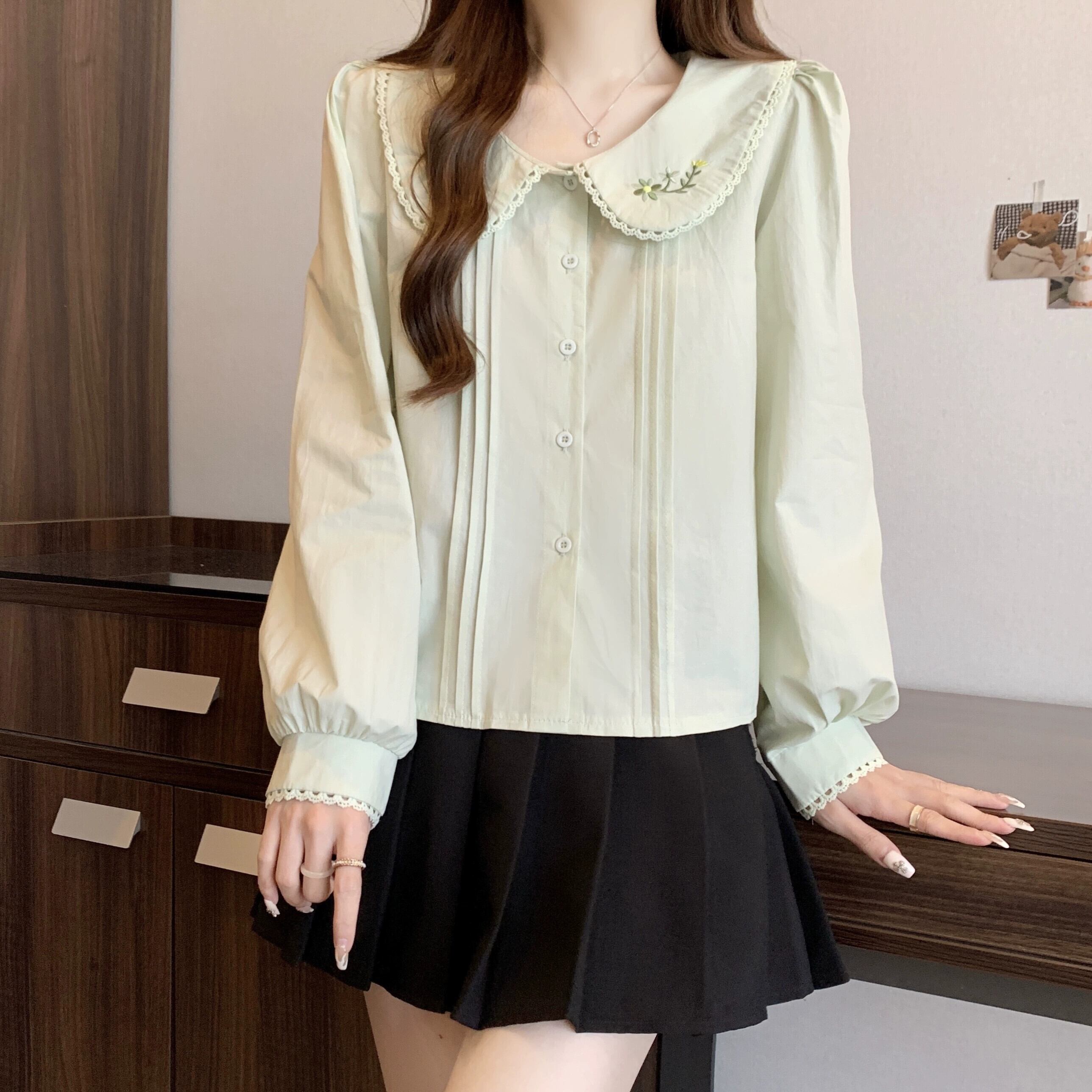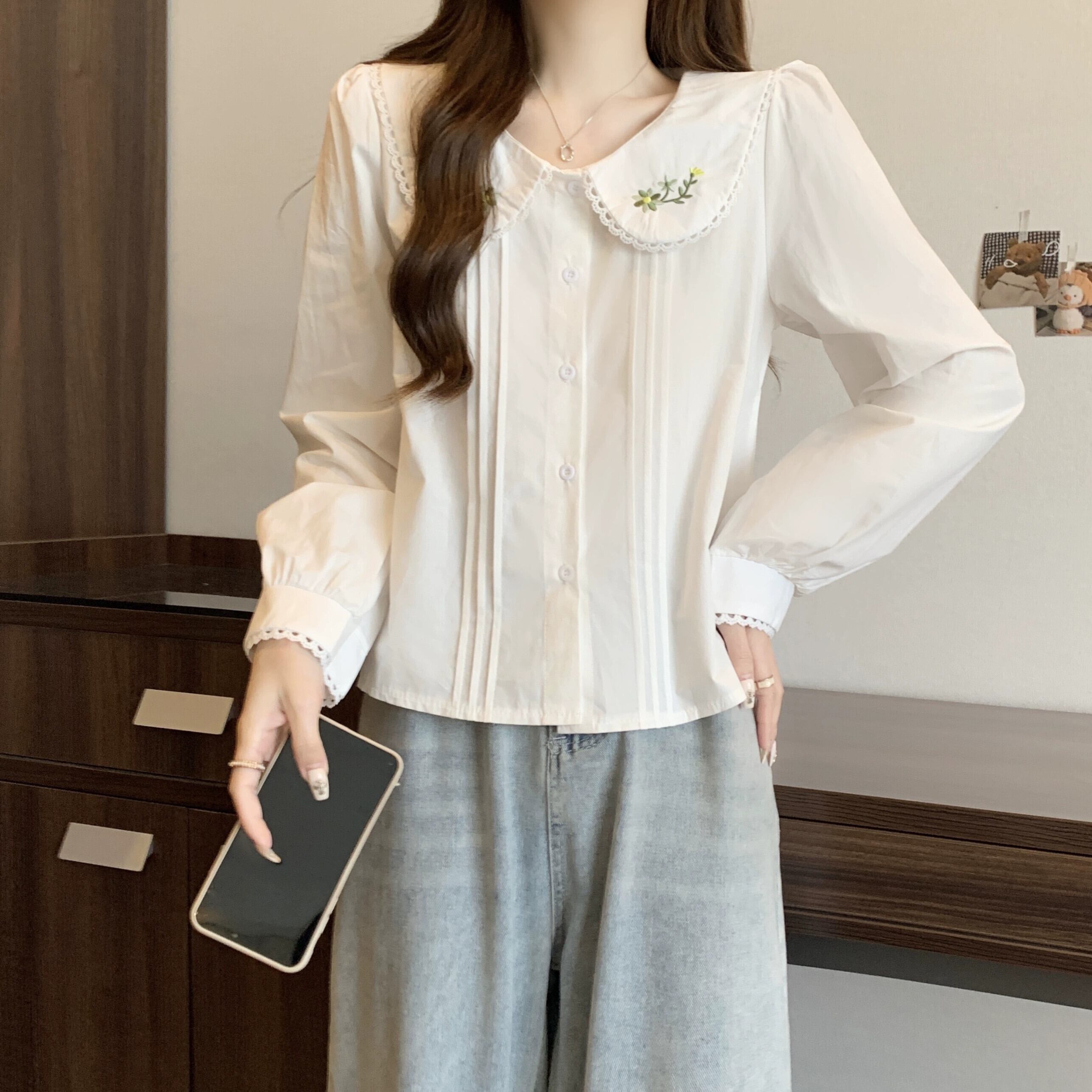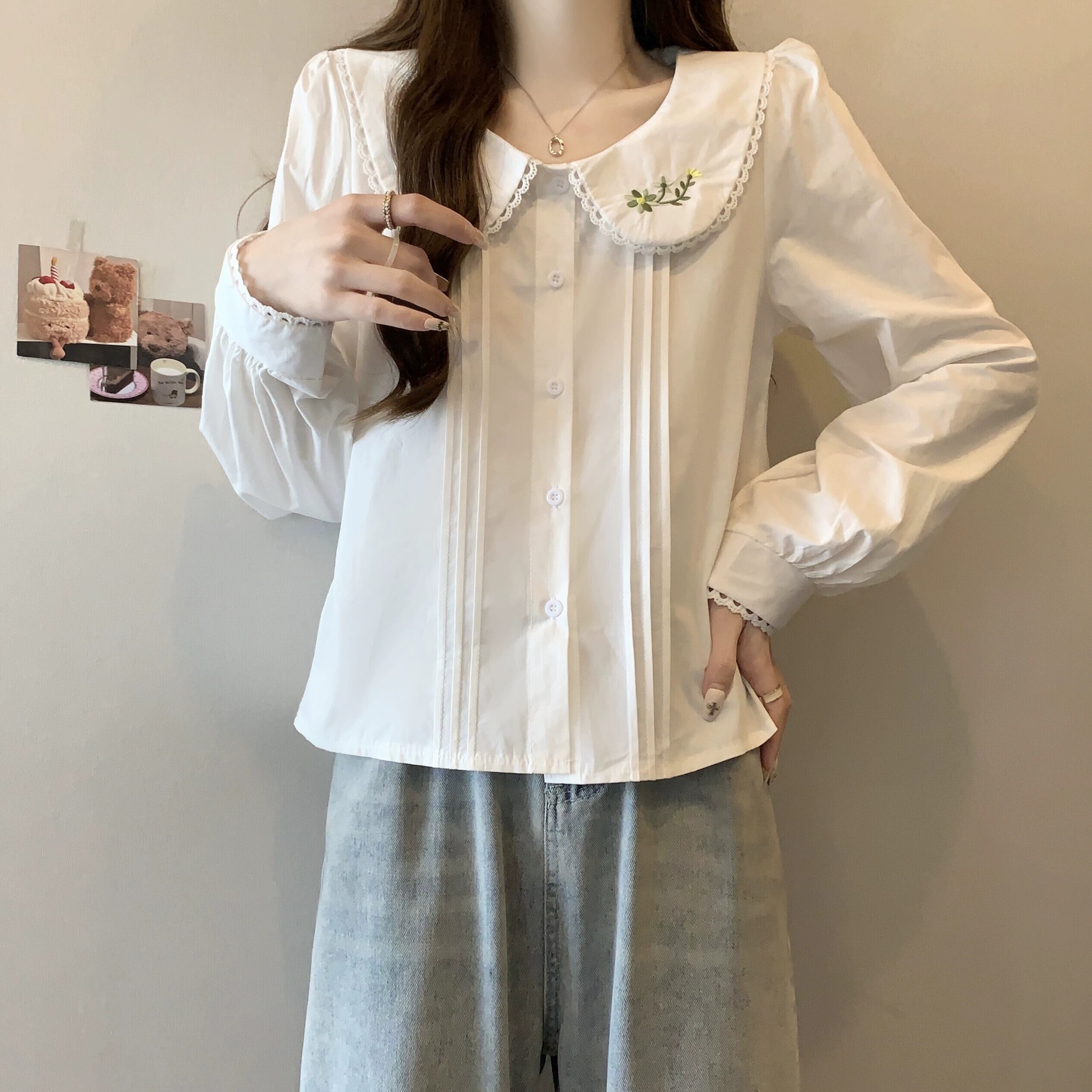 プラスサイズの婦人服脂肪 mm 春の新スタイル 2024 美しい新しい中国刺繍長袖シャツ人形の襟長袖トップ ロング レッド 大きめサイズ スプリング 春物 888419576961502