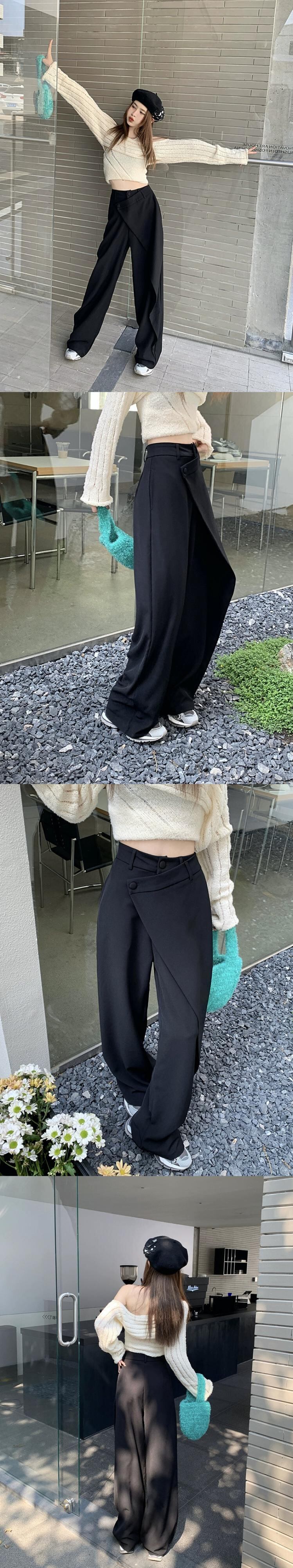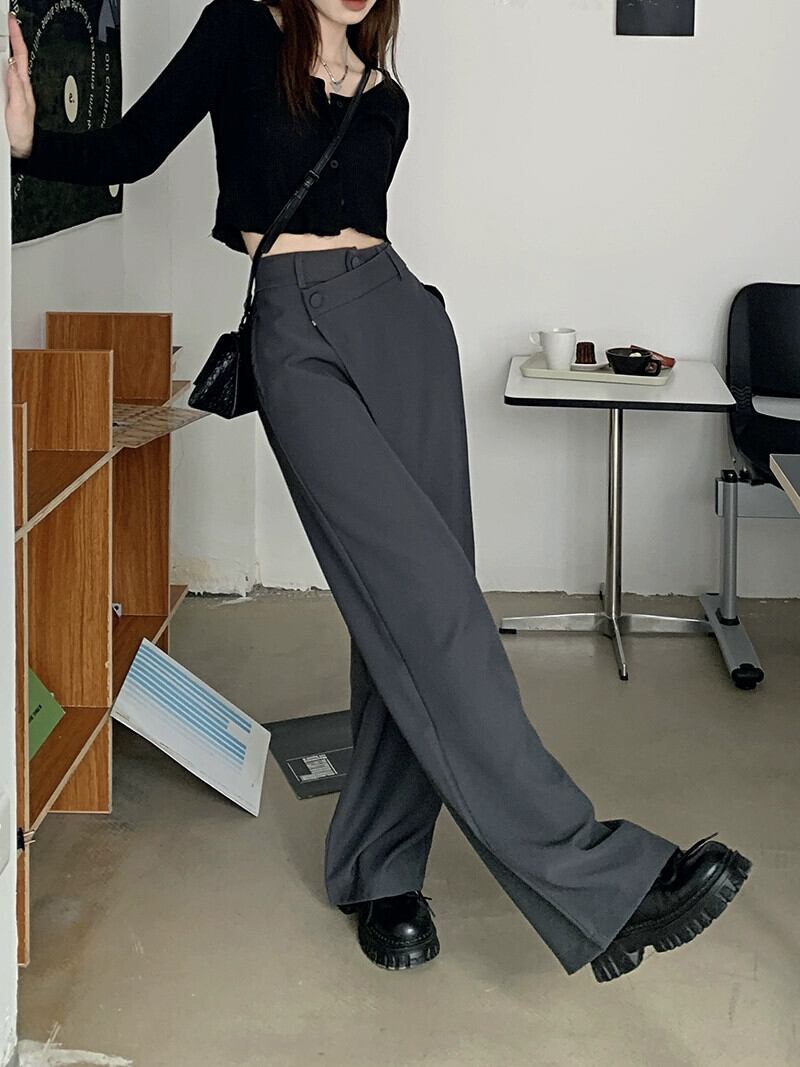 プラスサイズの女性の脂肪ミリメートル春の新スタイル 2024 不規則なスプライシングストレートパンツデザインドレープスーツパンツ 大きめサイズ スプリング 春物 888415867107695