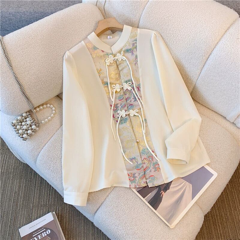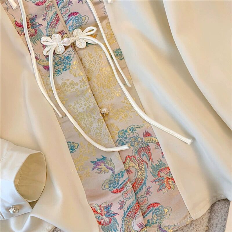 プラスサイズの婦人服脂肪 mm 春の新スタイル 2024 中国風のボタンアップ長袖シャツ漢服トップと馬のスカート ロング 大きめサイズ スプリング 春物 8884183780398554