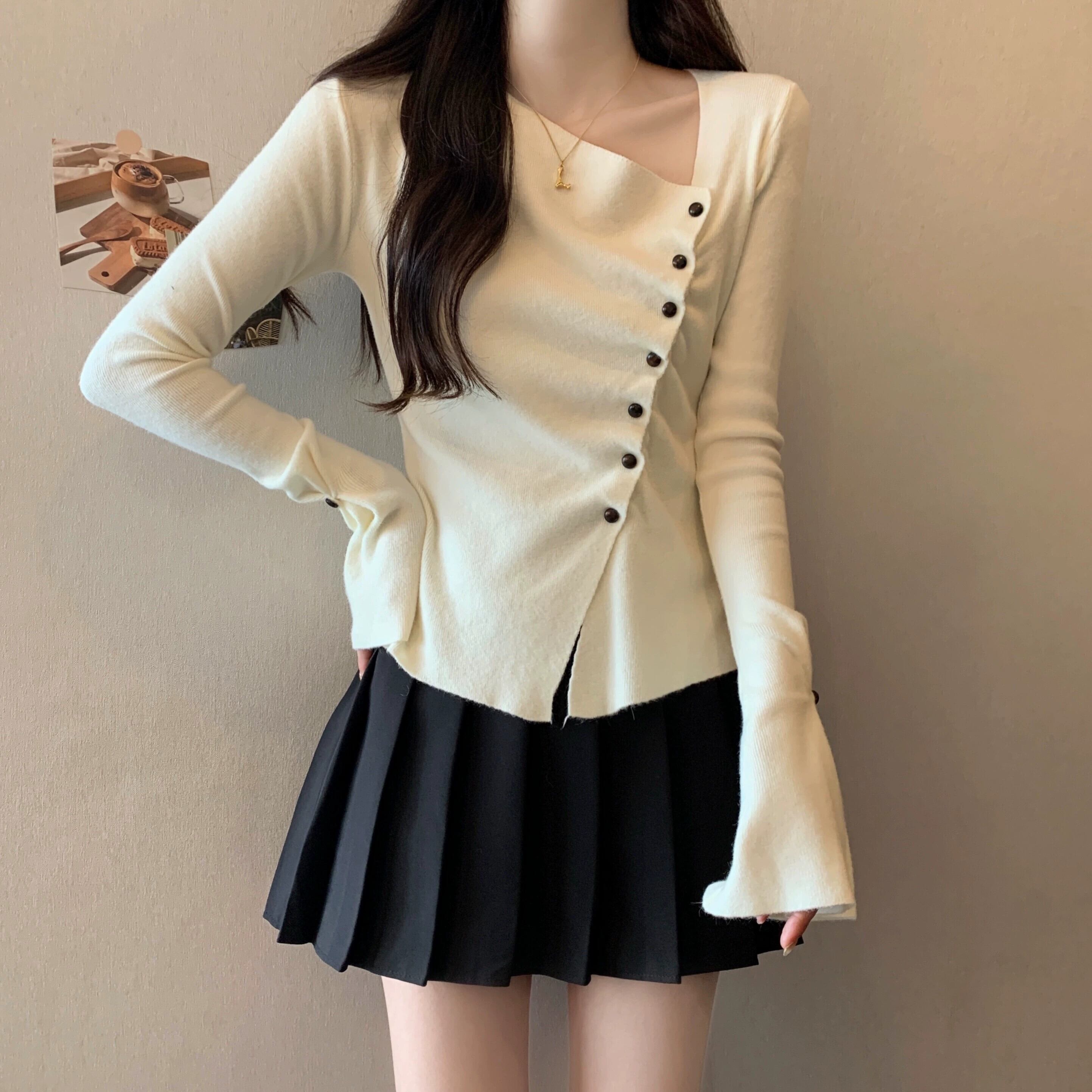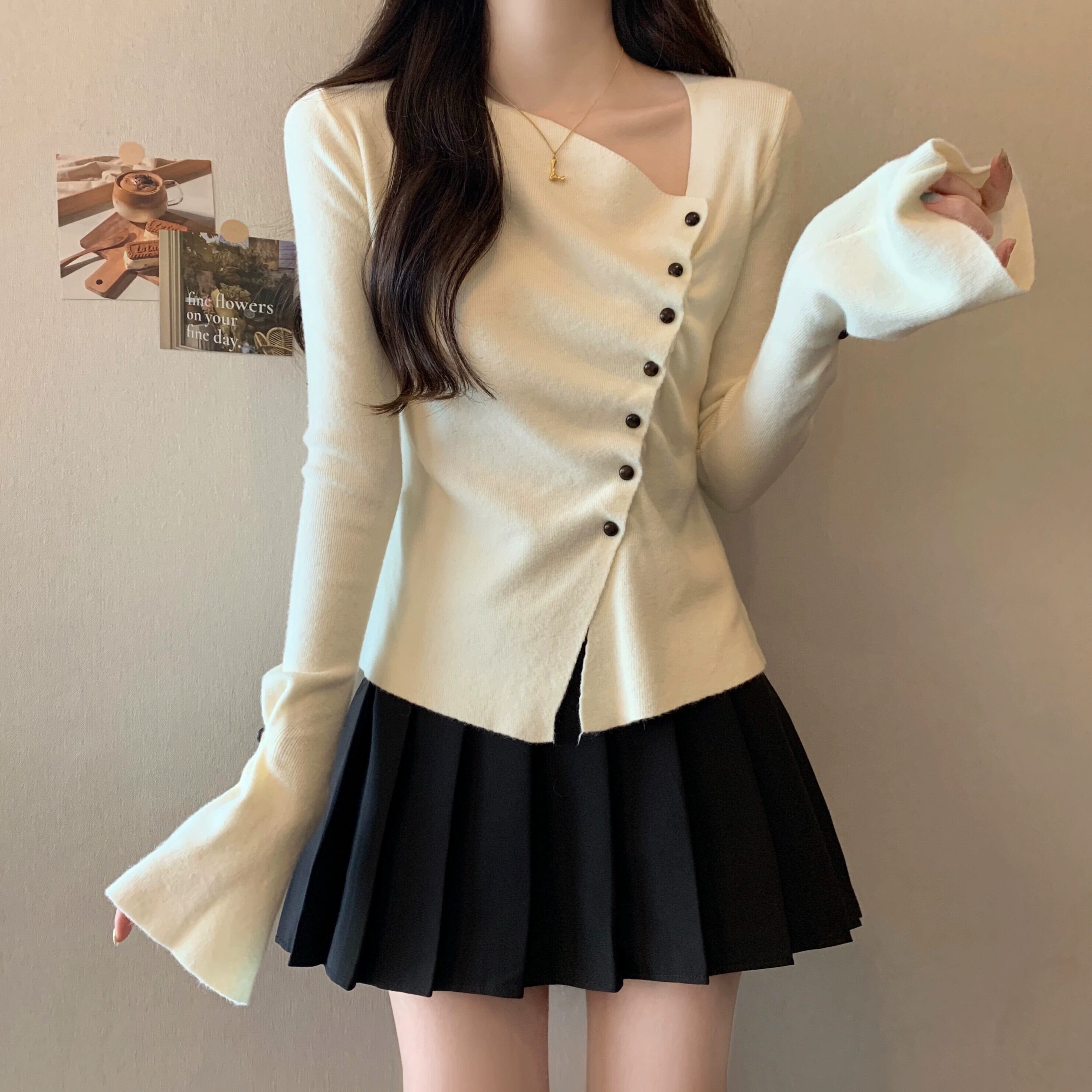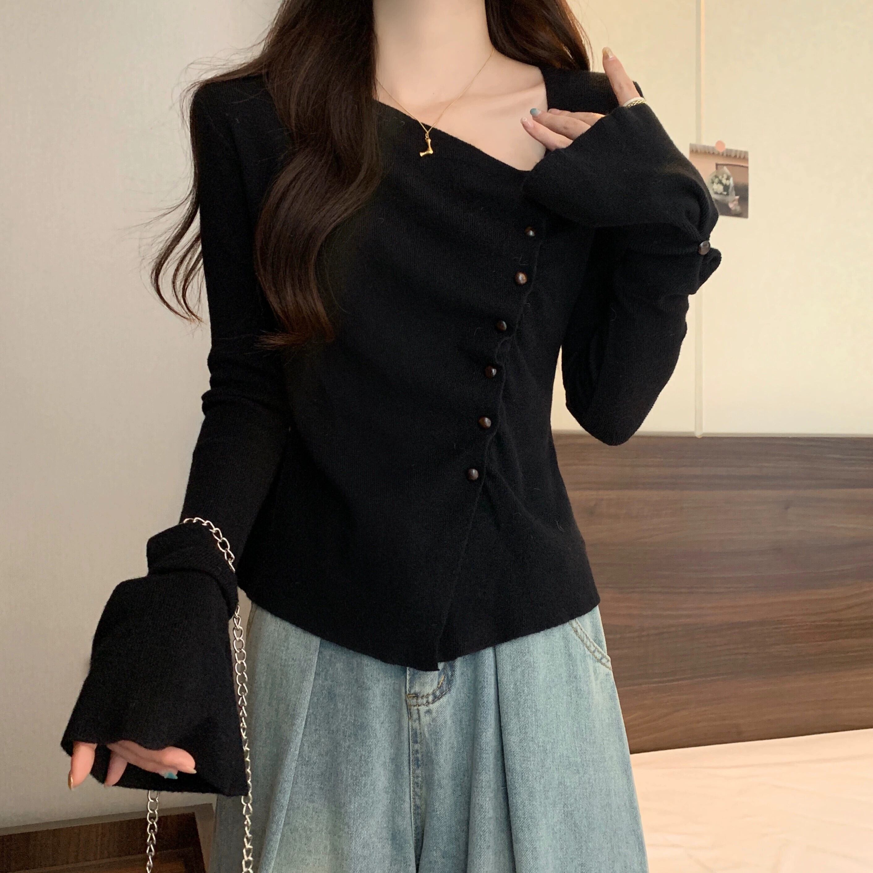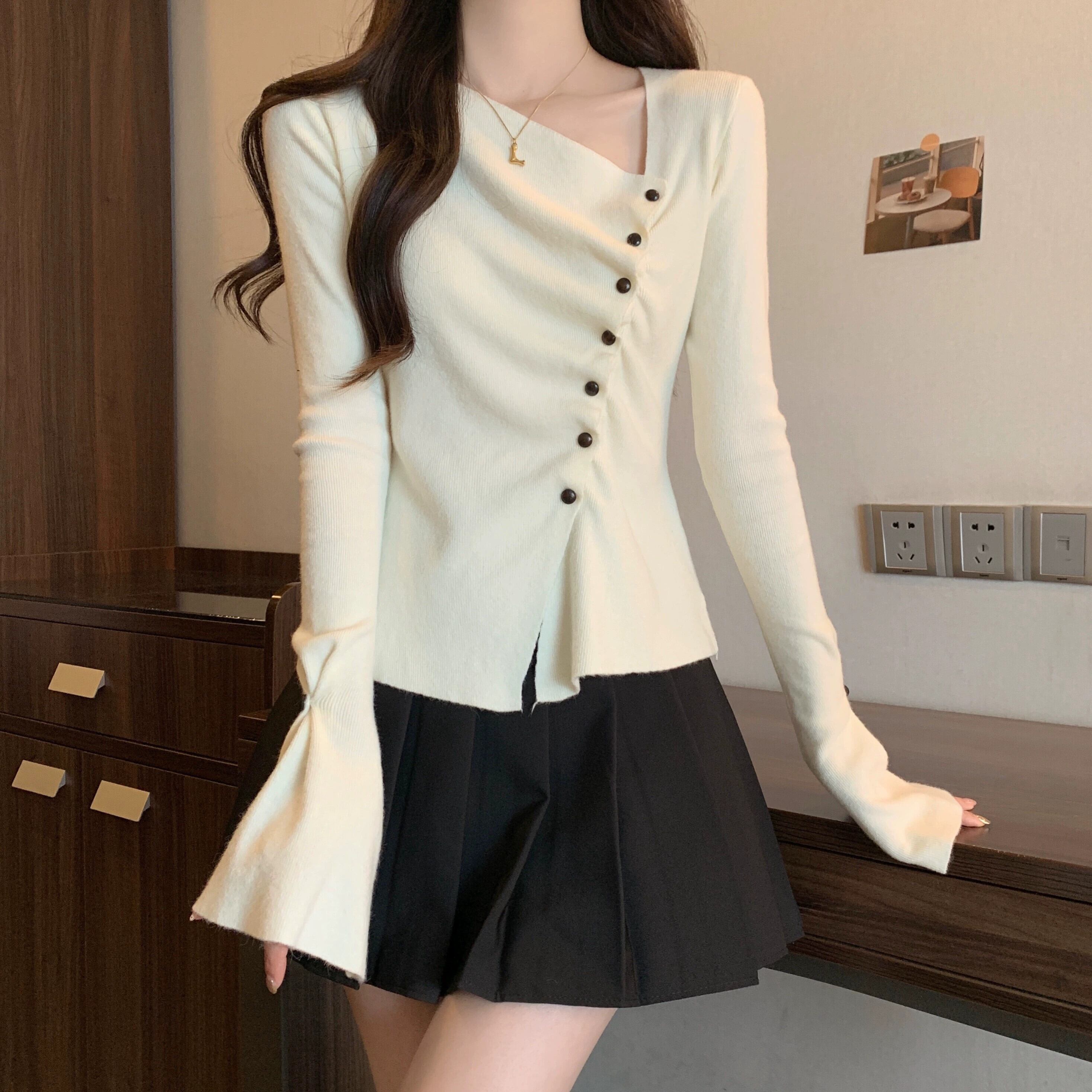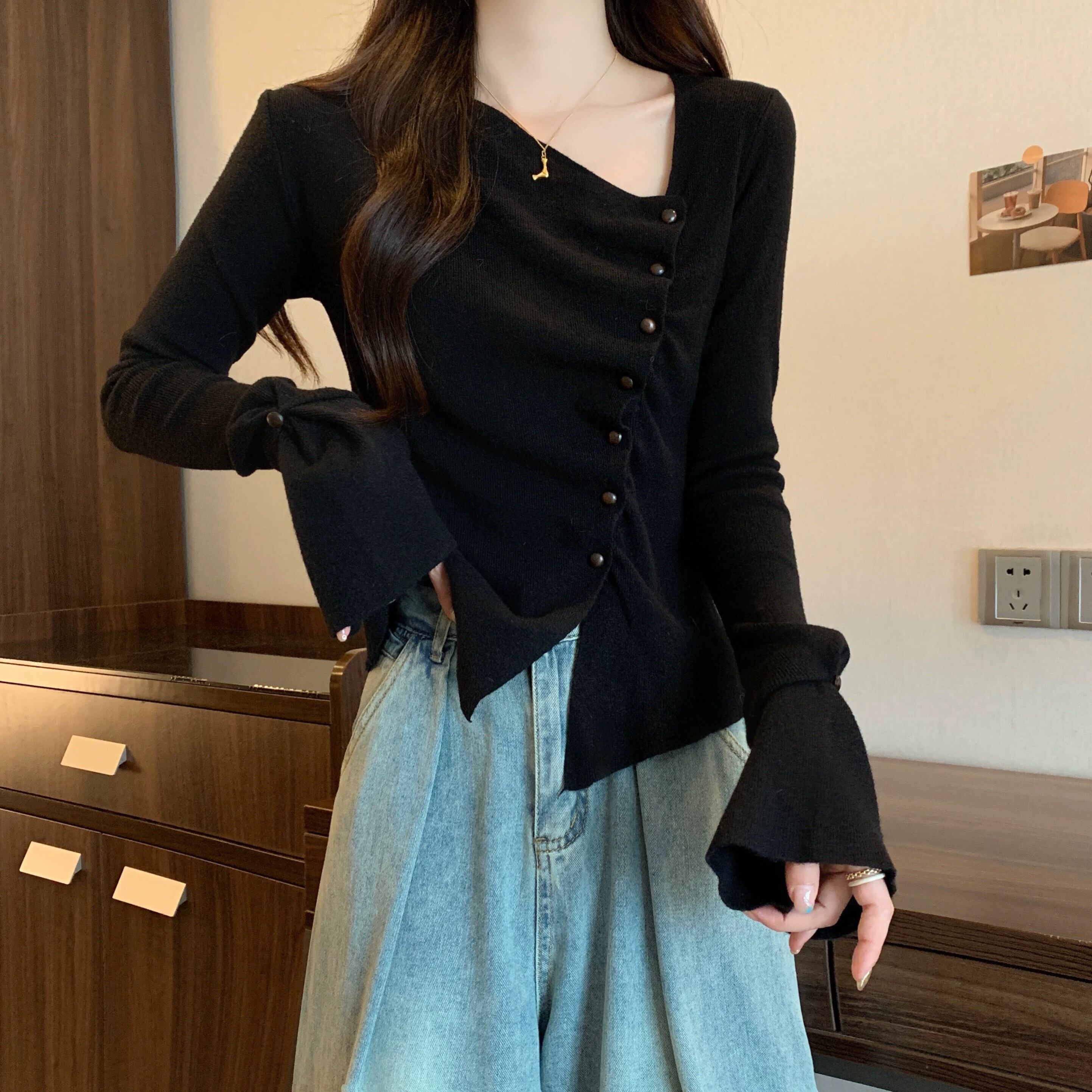 プラスサイズの婦人服ファット mm 春の新スタイル 2024 ユニークなデザインの長袖ボトリング シャツ裾スリット年齢軽減トップス ロング 大きめサイズ スプリング 春物 8884133477303641