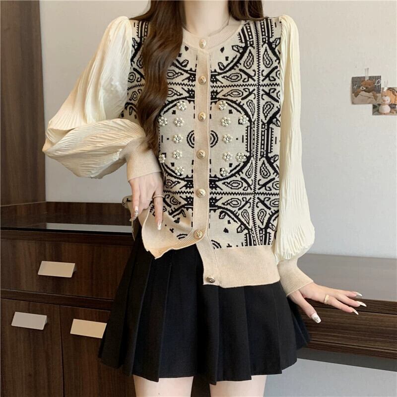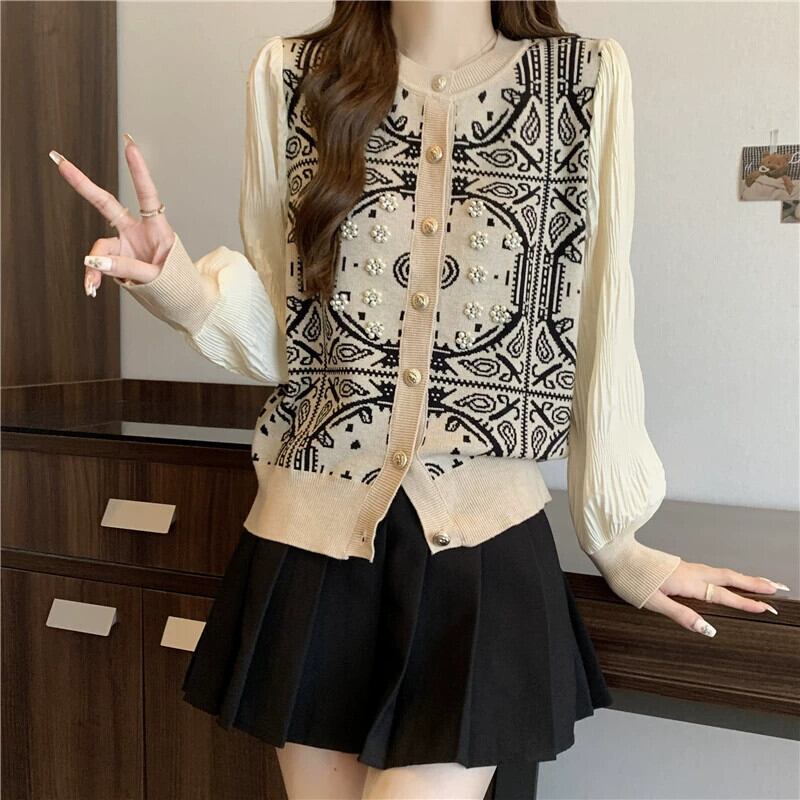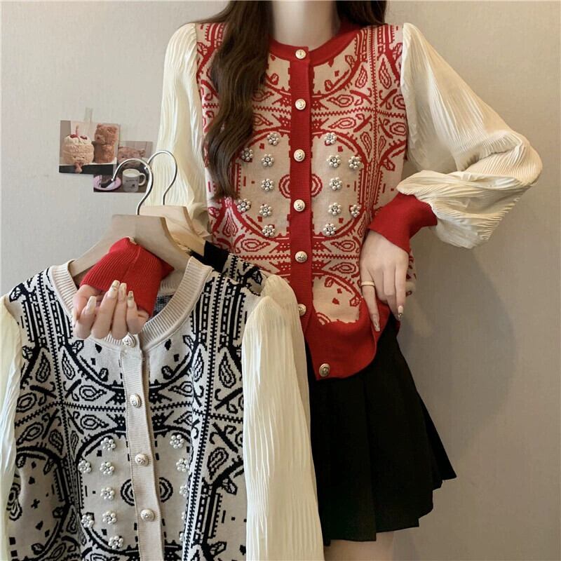 プラスサイズの婦人服ファット mm 春の新 2024 対照的なカラーデザインのセーター気質多目的レトロなセータージャケット 大きめサイズ スプリング 春物 8884157328292928