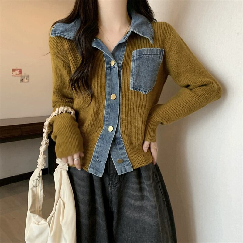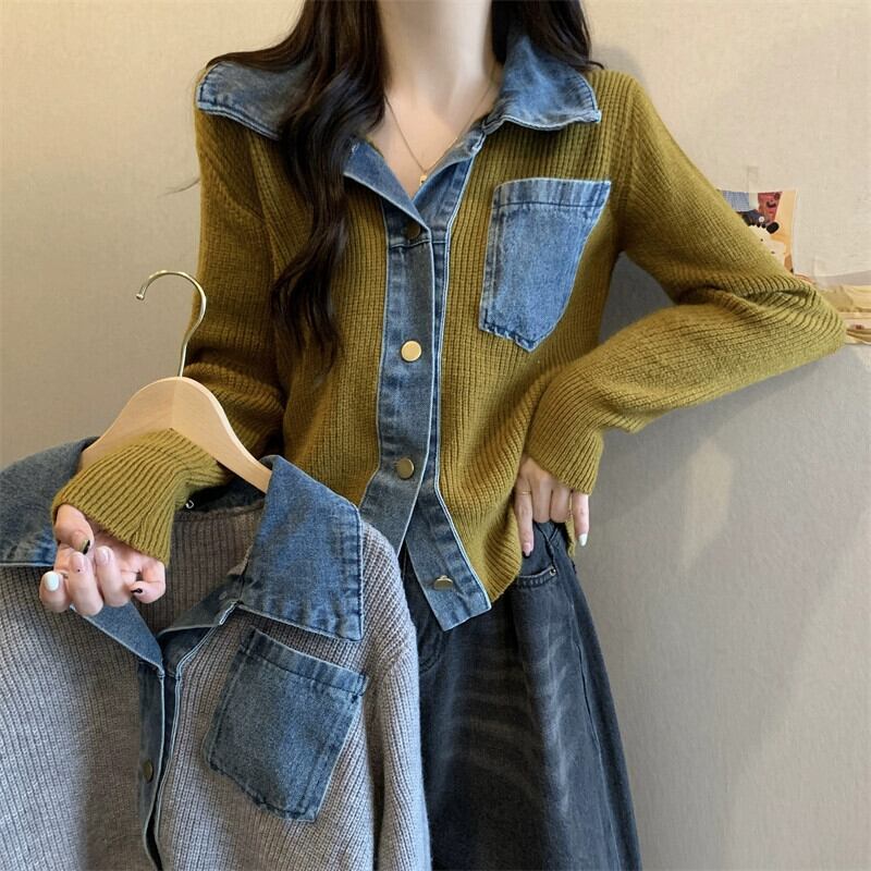 プラスサイズの婦人服ファット mm 春の新 2024 デザインデニムステッチポロカラーシャツ痩身長袖トップ ロング 大きめサイズ スプリング 春物 88841865138071