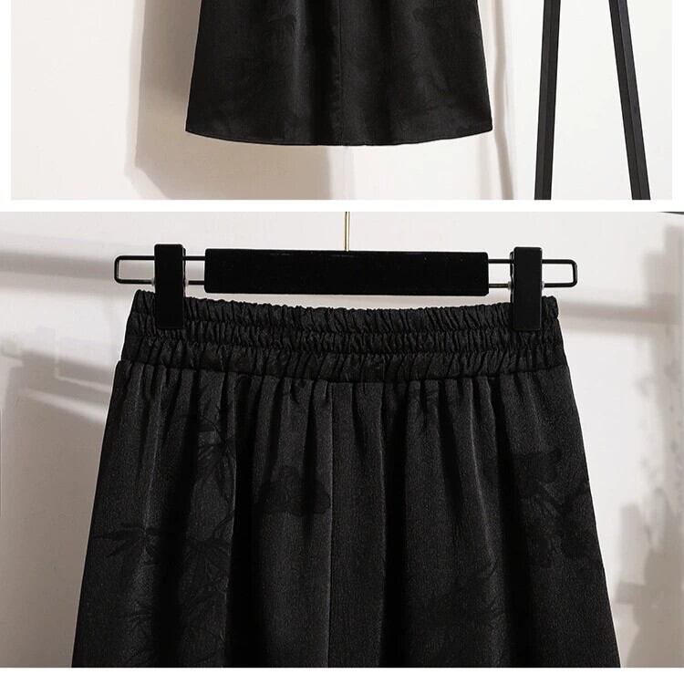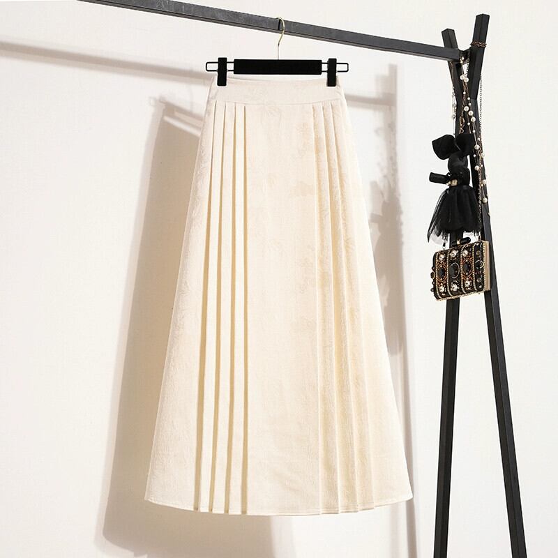 黒馬の顔スカート中国ジャカードスカート女性春プラスサイズ脂肪ミリメートル痩身ドレーププリーツスカート国民的なスタイルのロングスカート ブラック 大きめサイズ スプリング 春物 8884123542261437