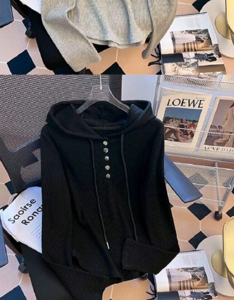 大きいサイズの脂肪ミリメートル新ファッション多用途フード付き長袖ボトシャツ 2024 春スリムスリム怠惰なスタイルのスウェットシャツ ロング 大きめサイズ スプリング 春物 8884193692244306