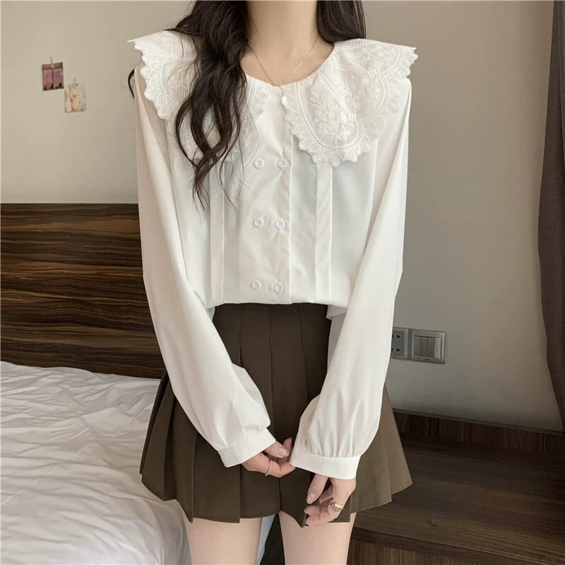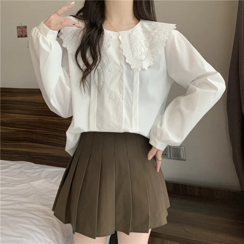 大きいサイズのフレンチドールカラー白シャツ女性の春と秋 2024 新しい脂肪 MM 痩身シャツ年齢を減らす美しいトップ ホワイト 大きめサイズ スプリング 春物 オータム 秋物 8884171216844428