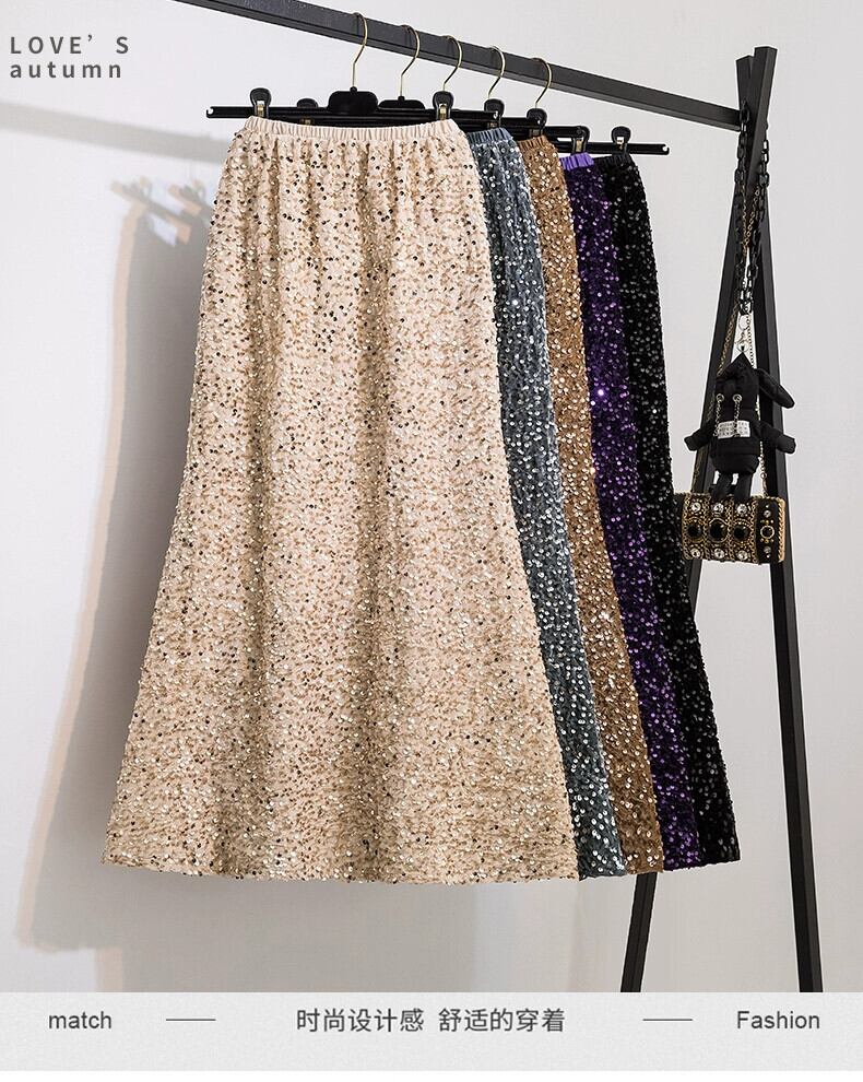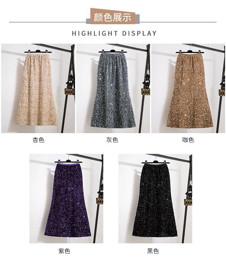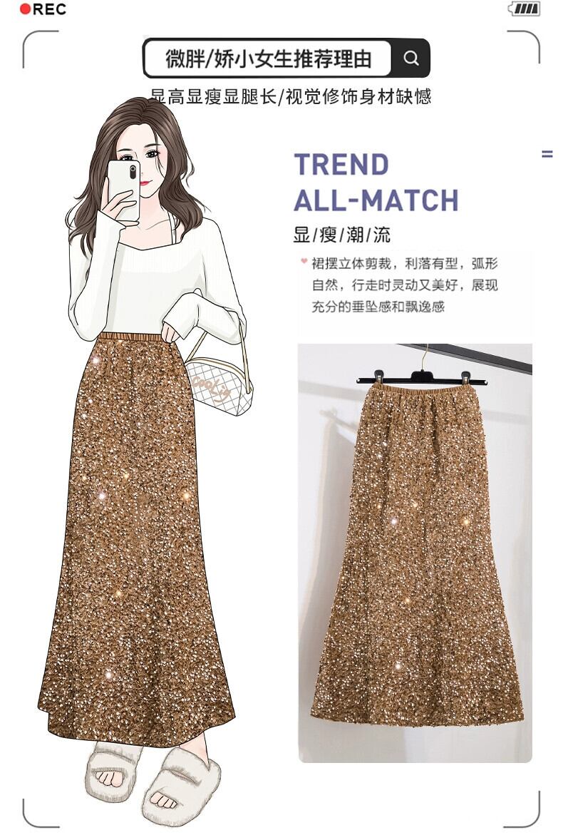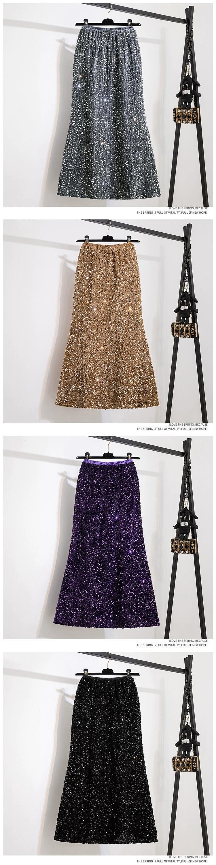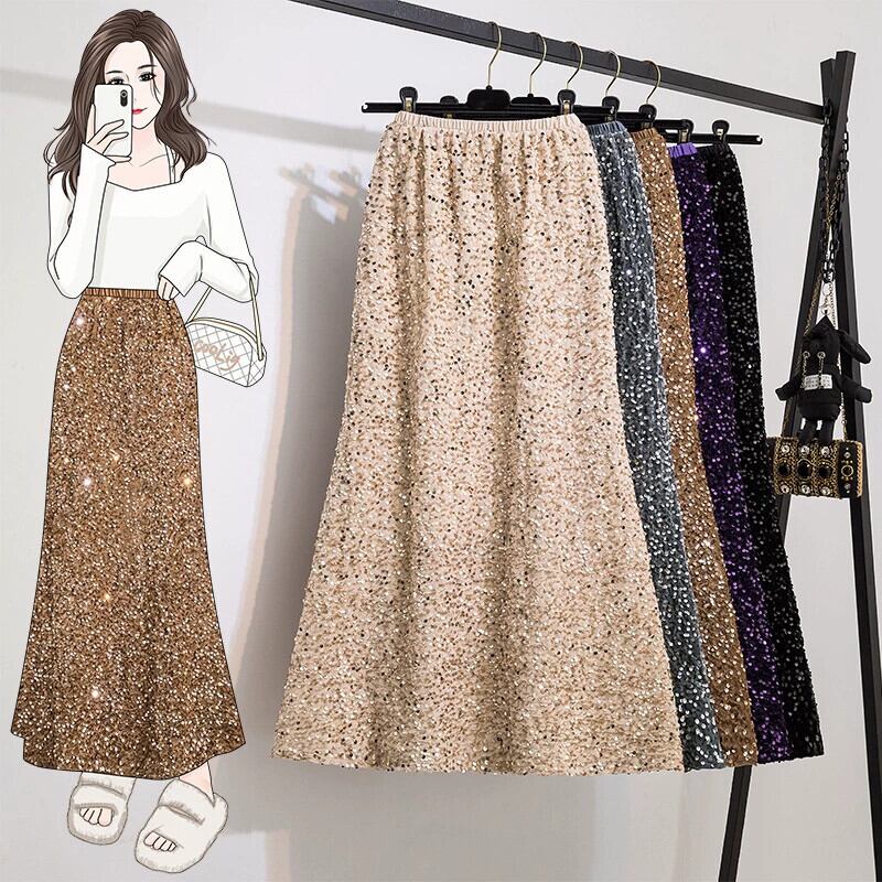 プラスサイズの婦人服ファットミリメートル春の新 2024 ハイエンドニッチグリッターベルベットハイウエストフィッシュテールスカートスカート 大きめサイズ スプリング 春物 8884175870663471