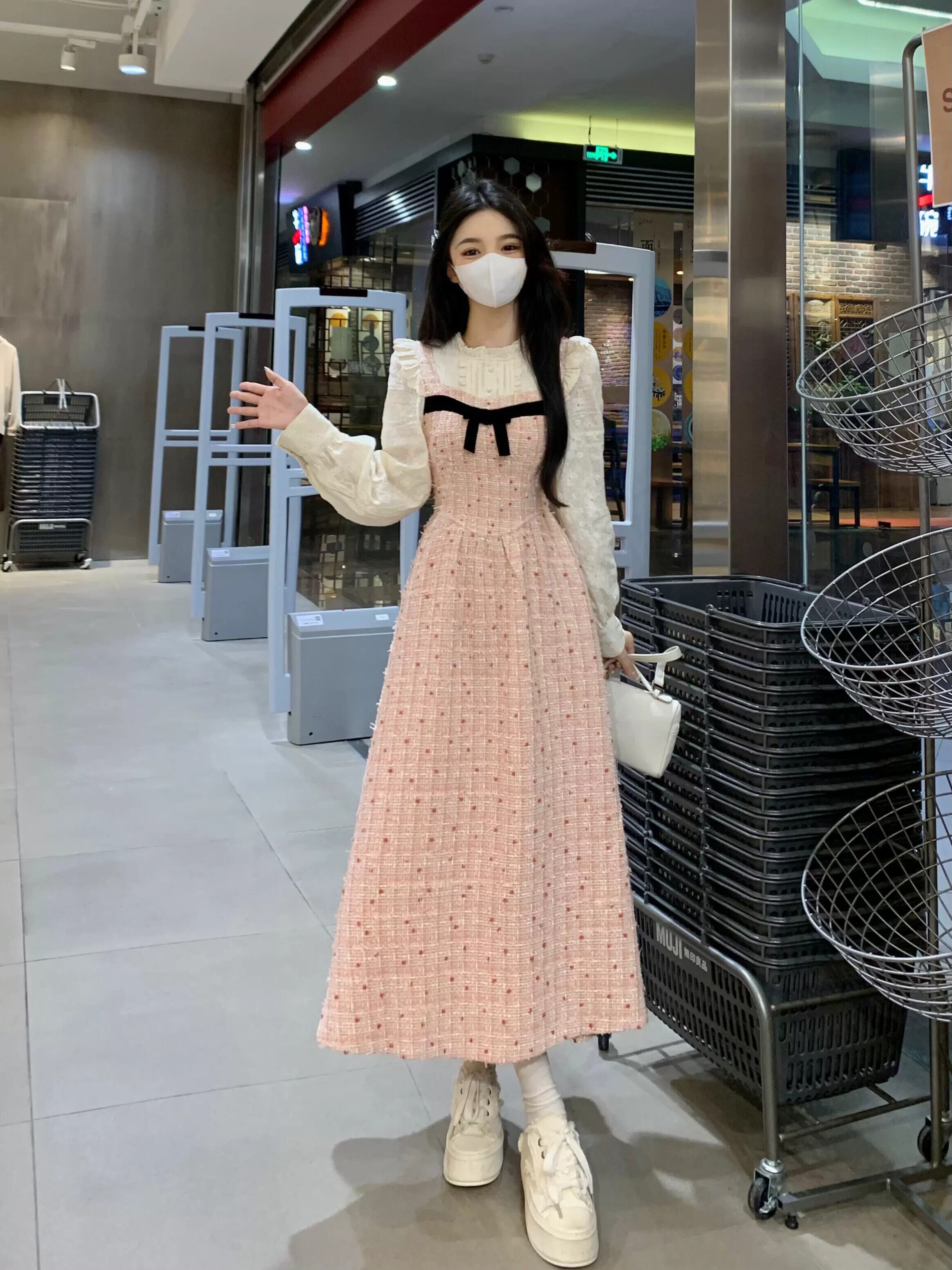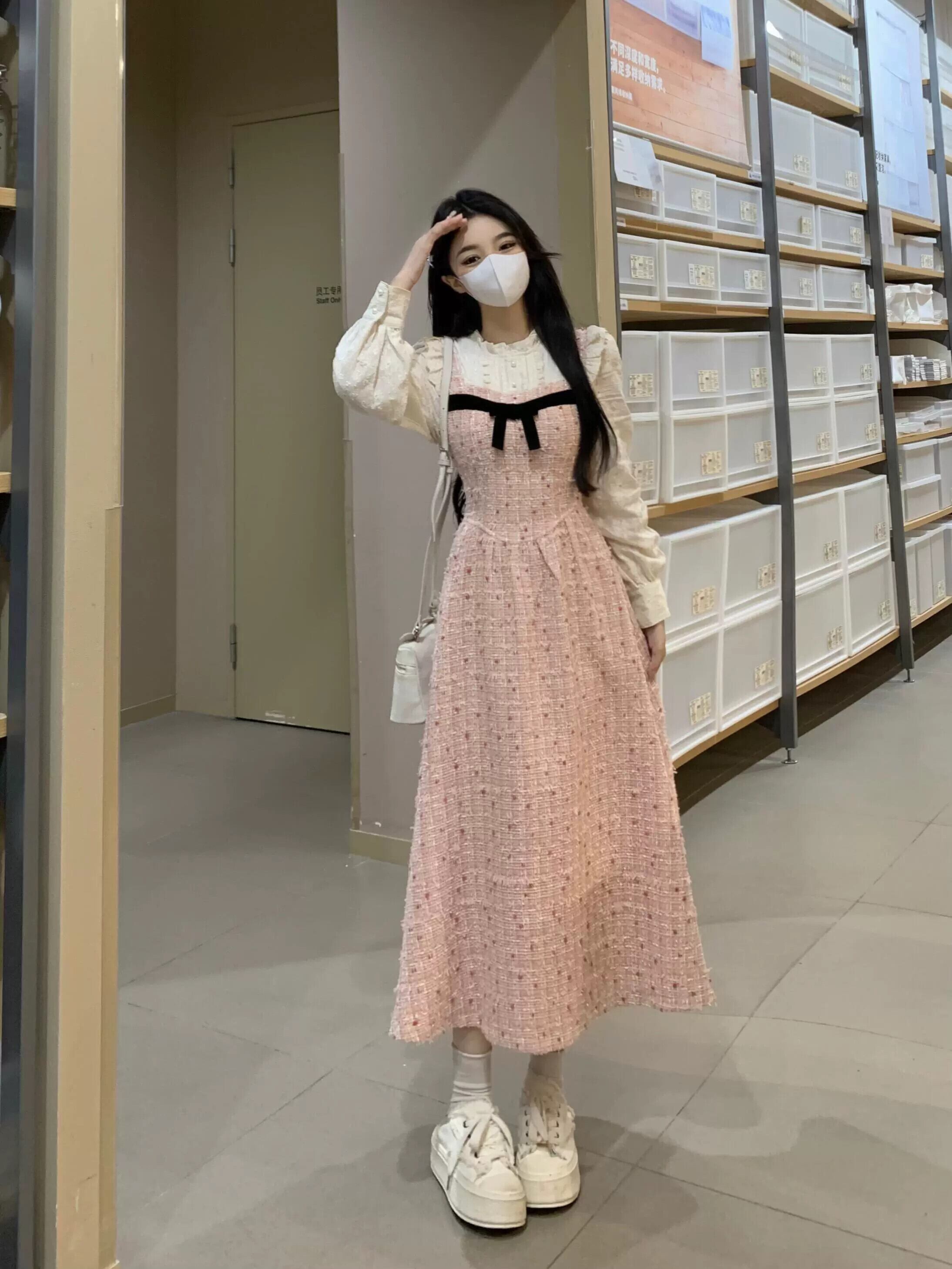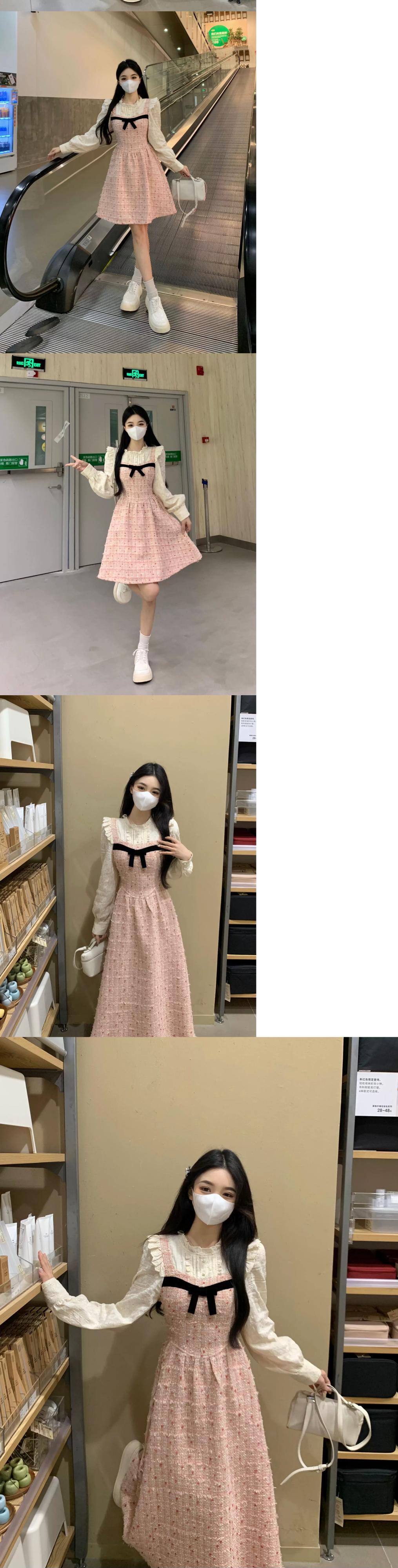 フレンチスタイル偽ツーピーススプライシングドレス女性春プラスサイズ脂肪MMレトロ気質ウエスト痩身ロングスカート 大きめサイズ スプリング 春物 8884151646238210