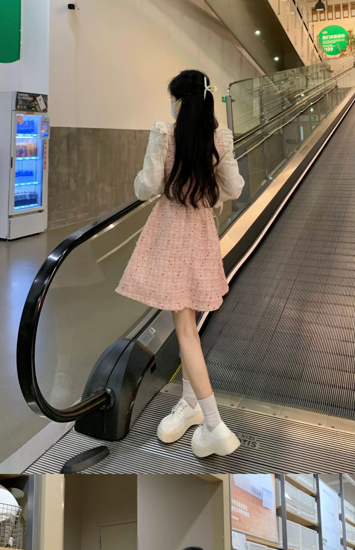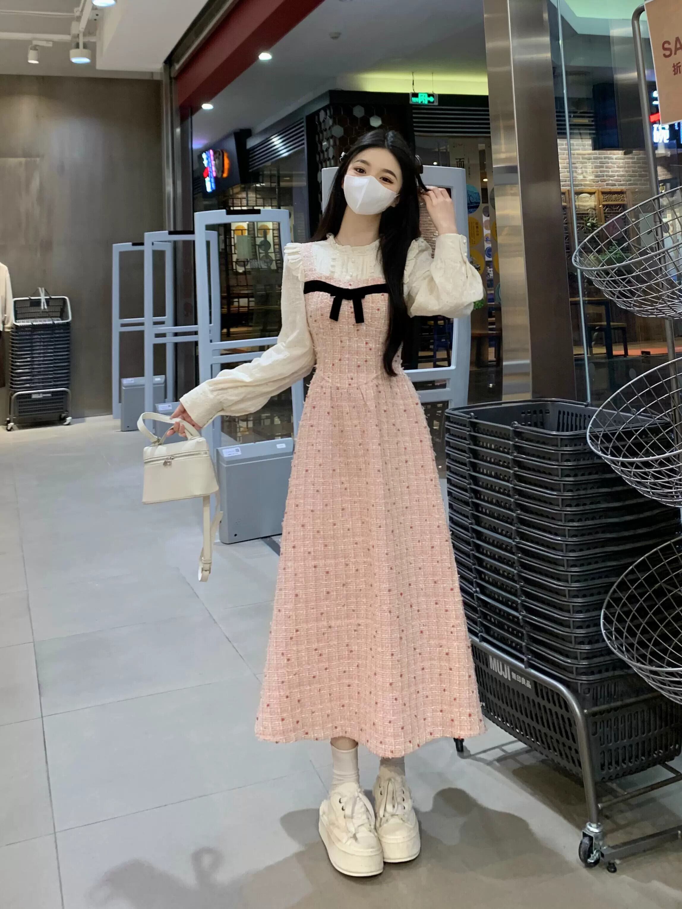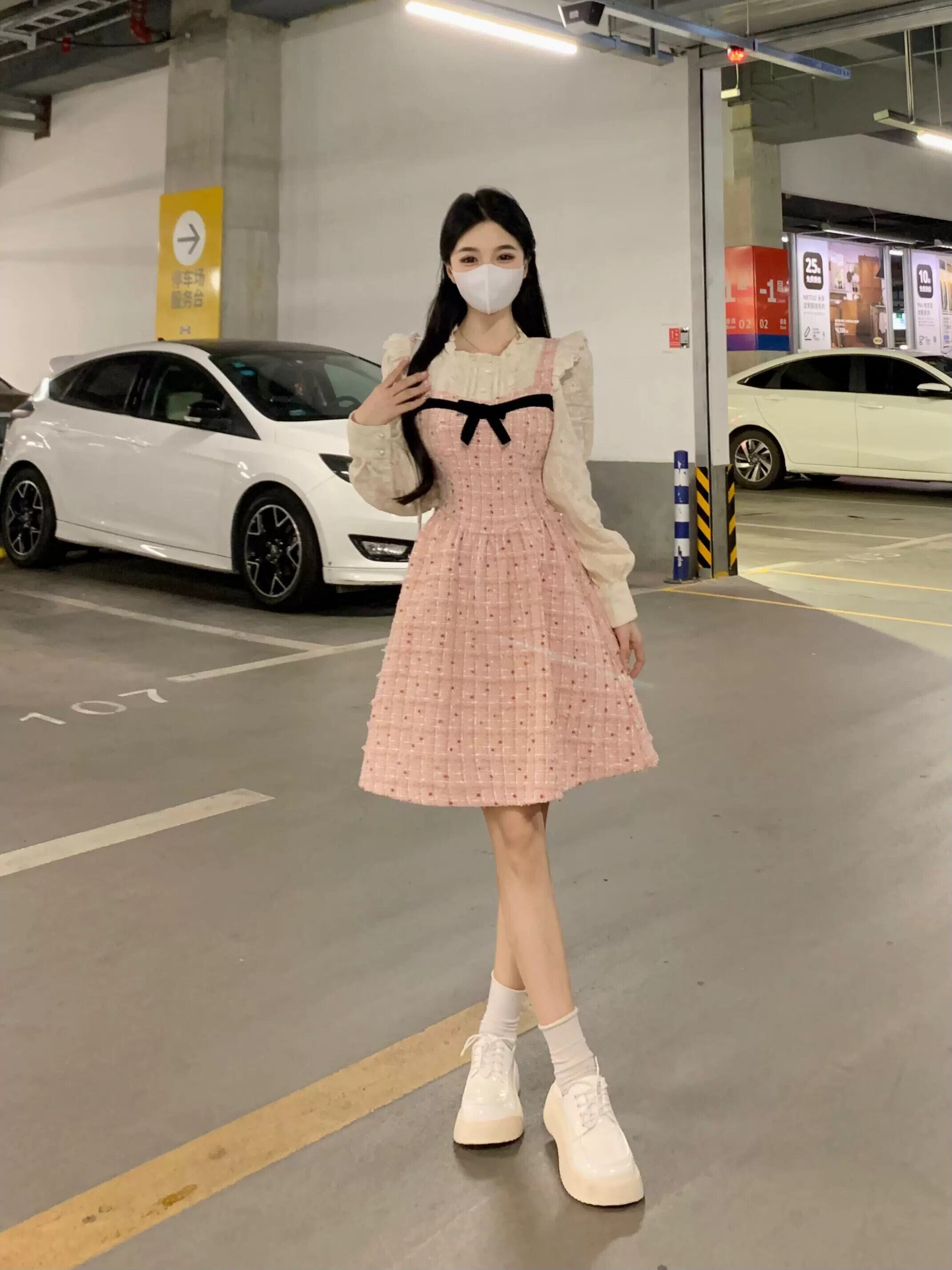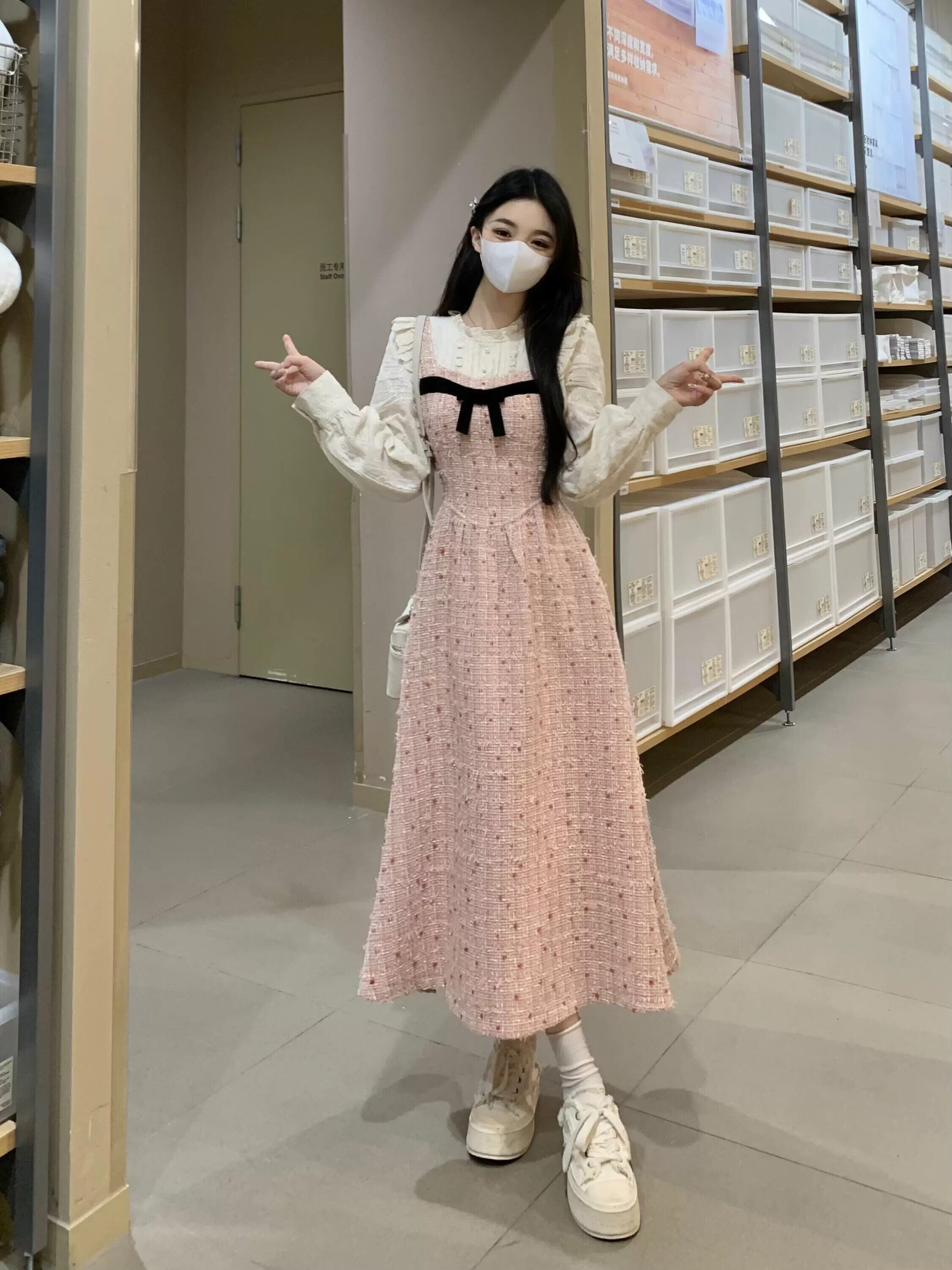 フレンチスタイル偽ツーピーススプライシングドレス女性春プラスサイズ脂肪MMレトロ気質ウエスト痩身ロングスカート 大きめサイズ スプリング 春物 8884151646238210