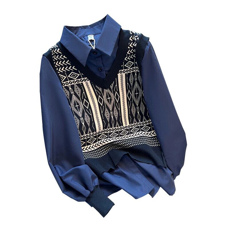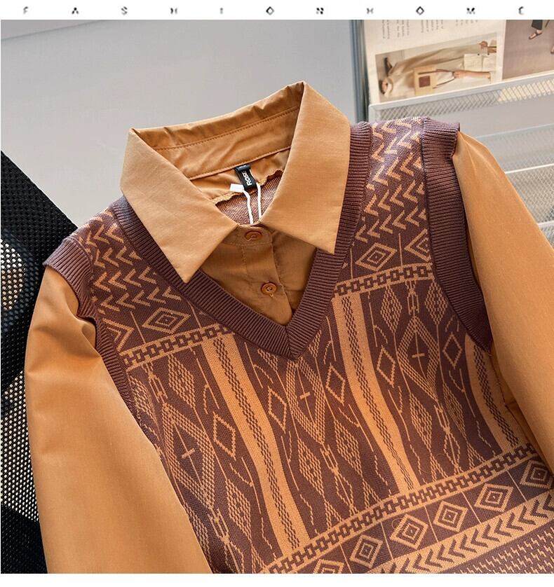 プラスサイズの女性の脂肪ミリメートル春の新スタイル 2024 ルーズデザインシャツスプライシングフェイクツーピース多用途ファッショナブルなトップス 大きめサイズ スプリング 春物 8884123438607914