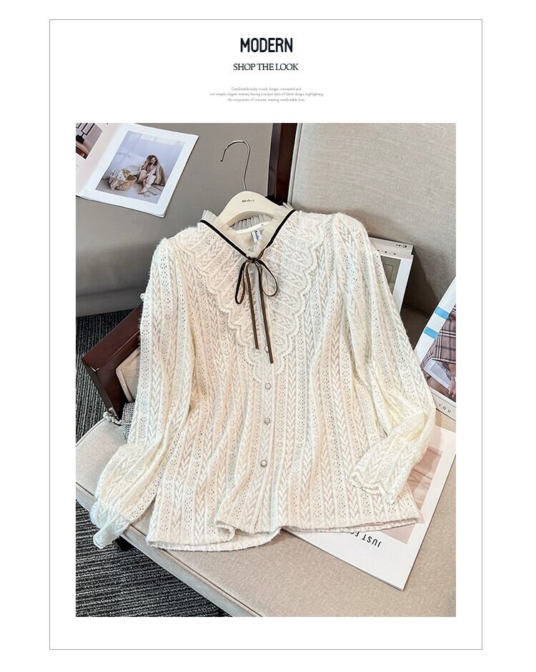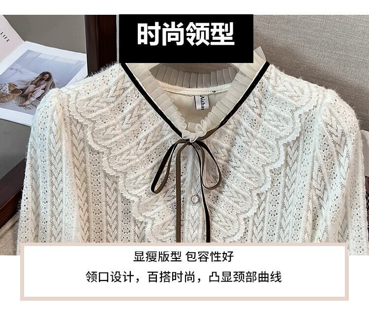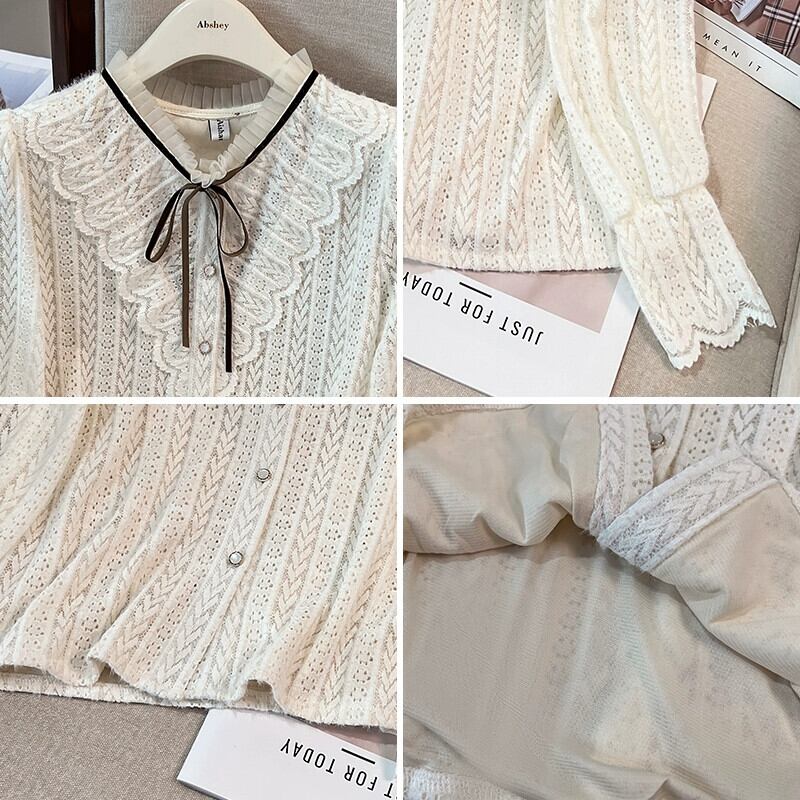 プラスサイズの女性の脂肪 mm 春の新 2024 蝶ネクタイ年齢軽減シャツ多用途お腹カバースリム長袖トップ ロング リボン 大きめサイズ スプリング 春物 88841477170436