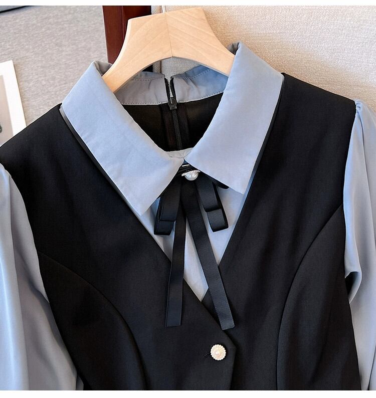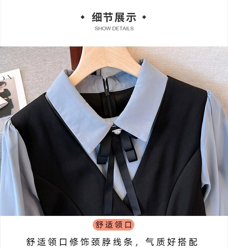 プラスサイズの女性の太ったmm春の新しいスタイル2024年肉をカバーして年齢を減らし、股間をカバーするシックなAラインスカート、フェイクツーピースカジュアルスカート 大きめサイズ スプリング 春物 8884121061187392