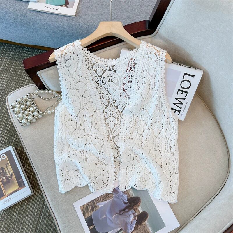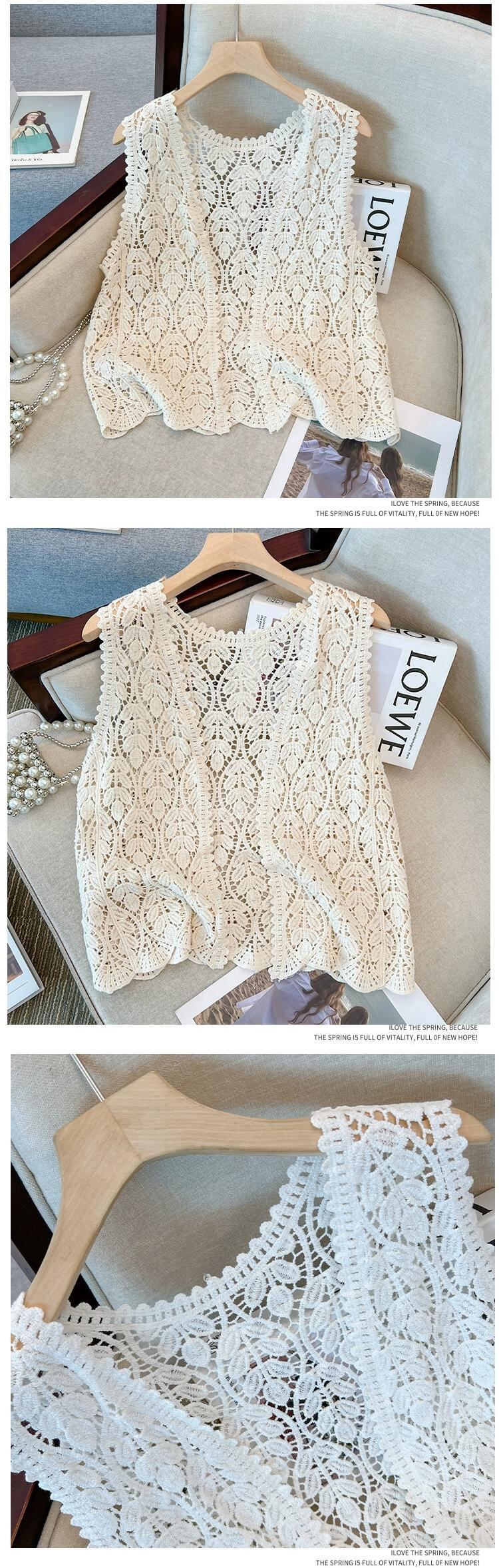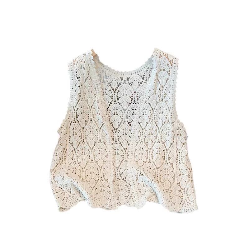 プラスサイズの女性の脂肪 mm 夏の新スタイル 2024 ルーズでスリムなかぎ針編みベスト中空アウターカーディガン年齢軽減トップ 大きめサイズ サマー 夏物 8884176522426417