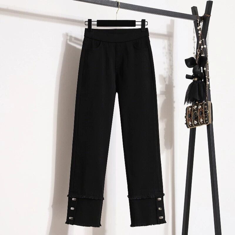 プラスサイズの婦人服ファット mm 春の新 2024 ファッションニッチデザインカジュアルパンツ多用途洋ナシ型ボディ 9 点パンツ 大きめサイズ スプリング 春物 888413373475686