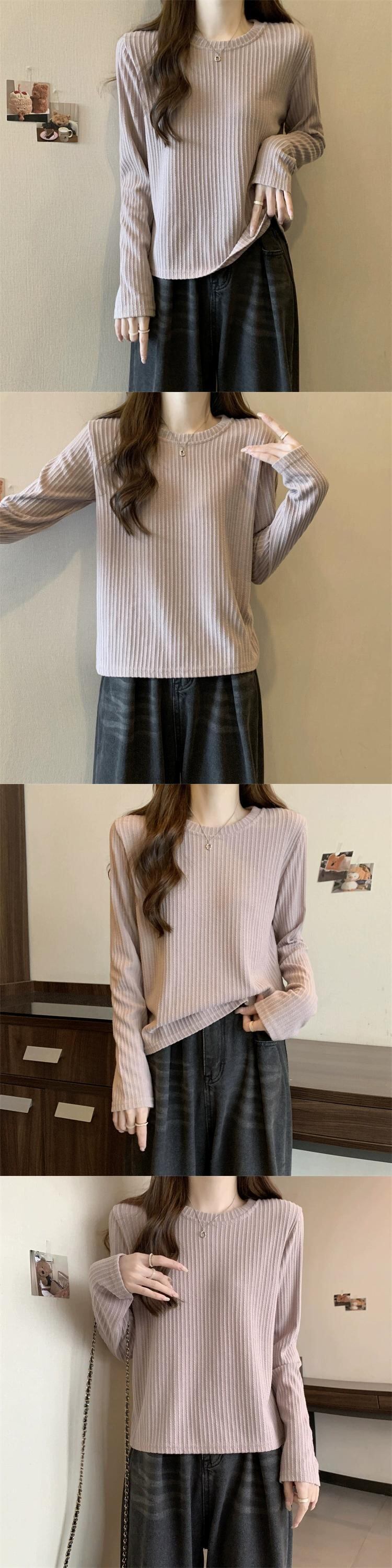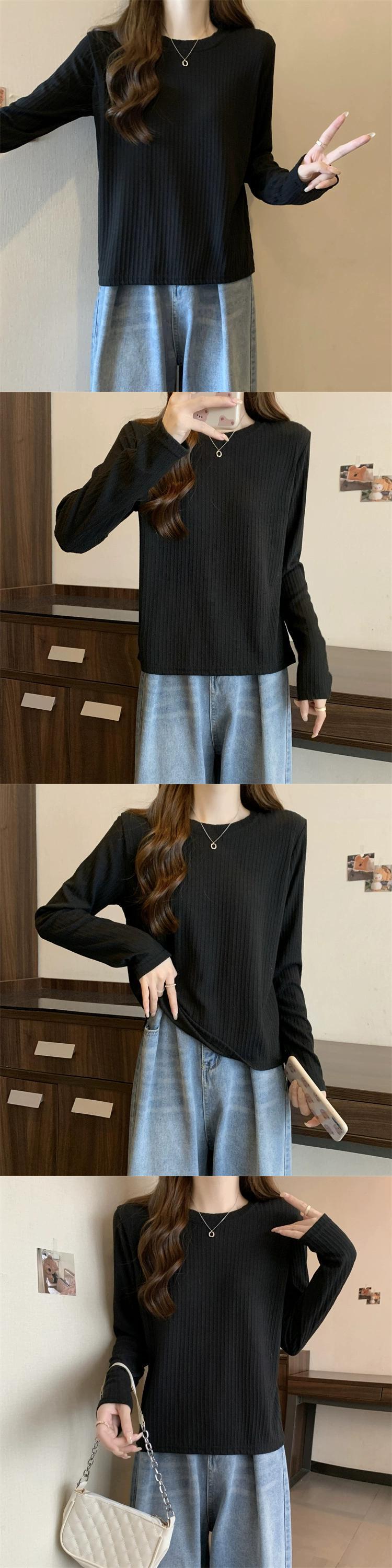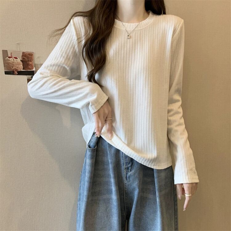 プラスサイズの女性のファット MM 新バージョン 2024 ラウンドネック無地 Tシャツ春インナー重ね着シャツ優しい風トップ 大きめサイズ スプリング 春物 Oネック ソリッドカラー 8884172735929639