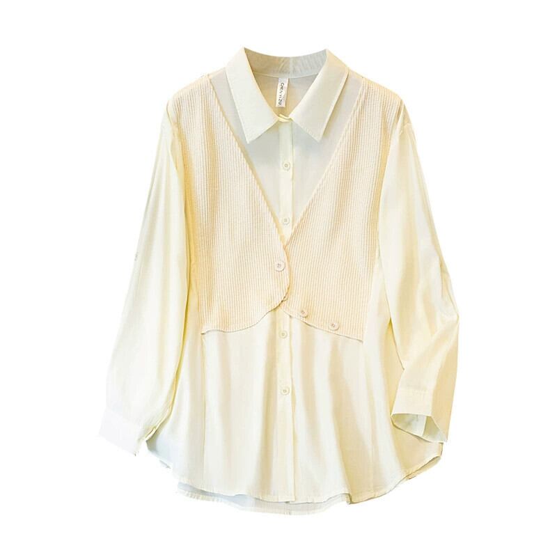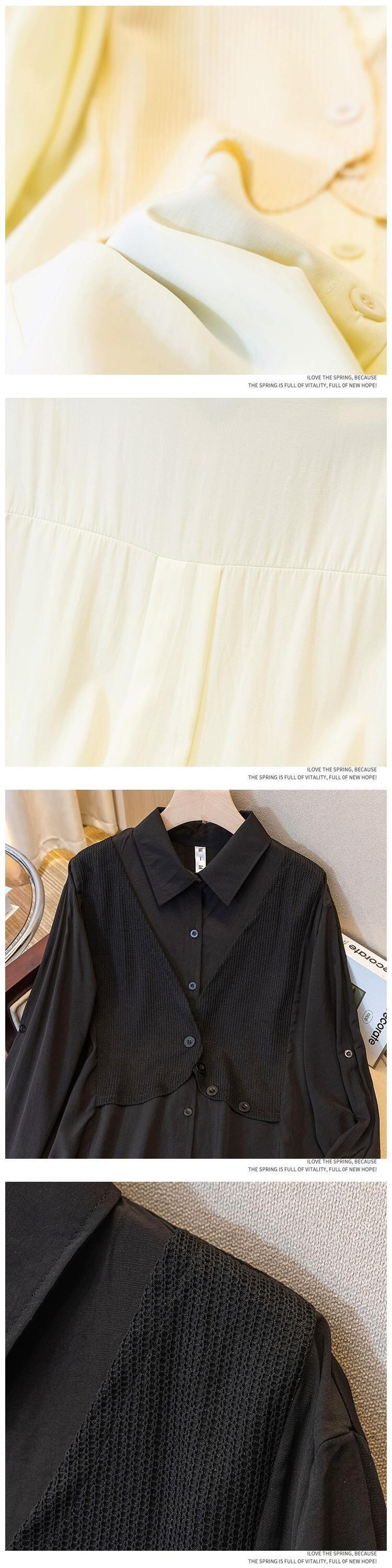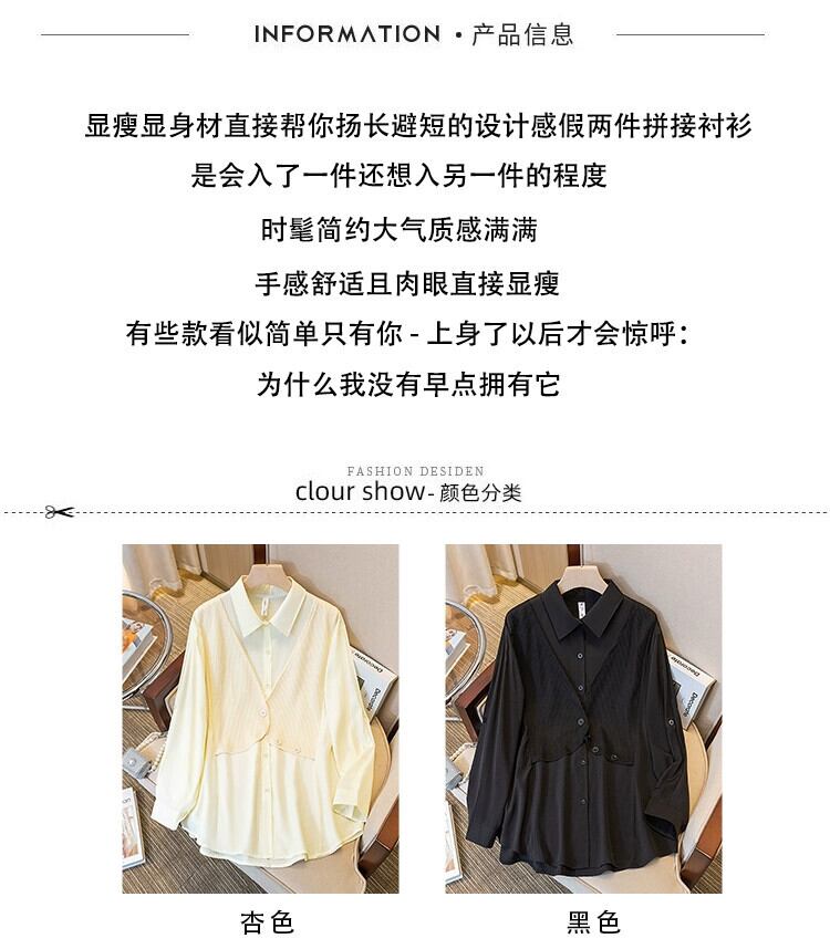 プラスサイズの女性の脂肪 mm 春の新スタイル 2024 フレンチ スタイルのデザイン シャツ年齢を減らすファッショナブルな偽ツーピース トップス 大きめサイズ スプリング 春物 8884194071743035