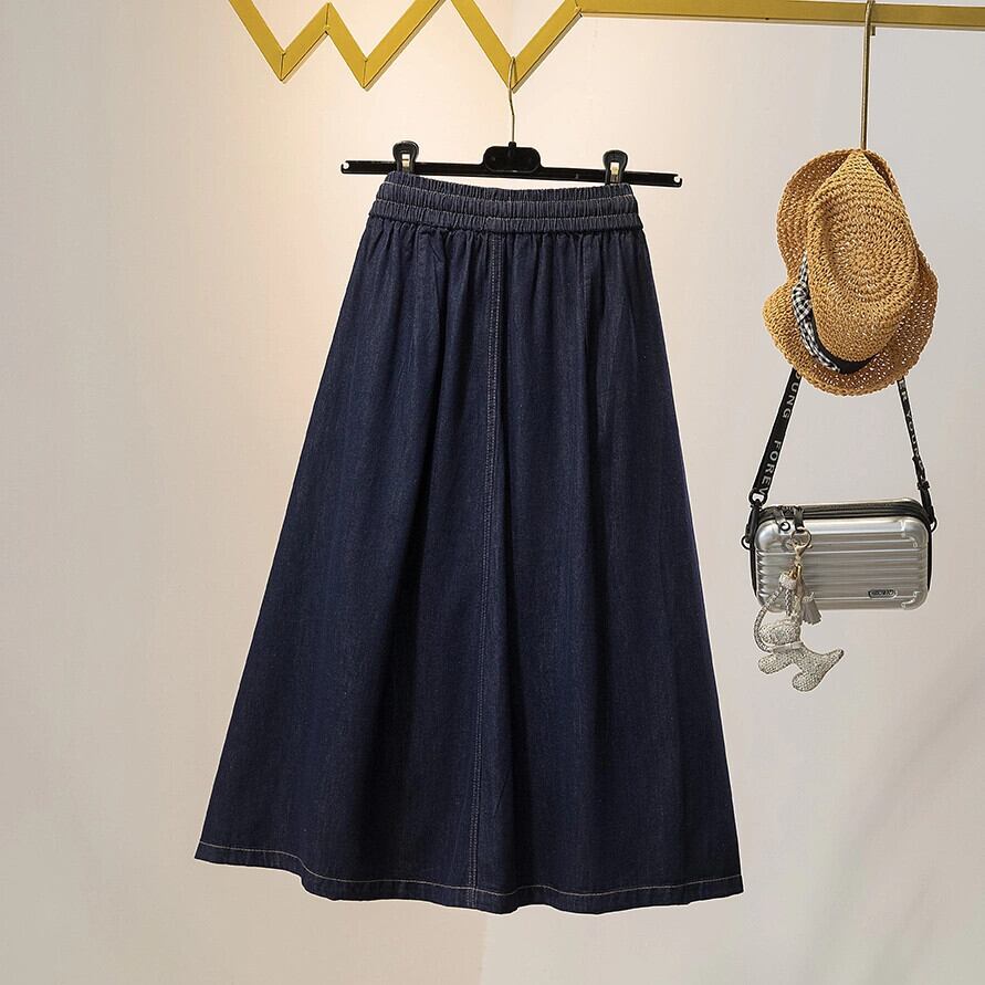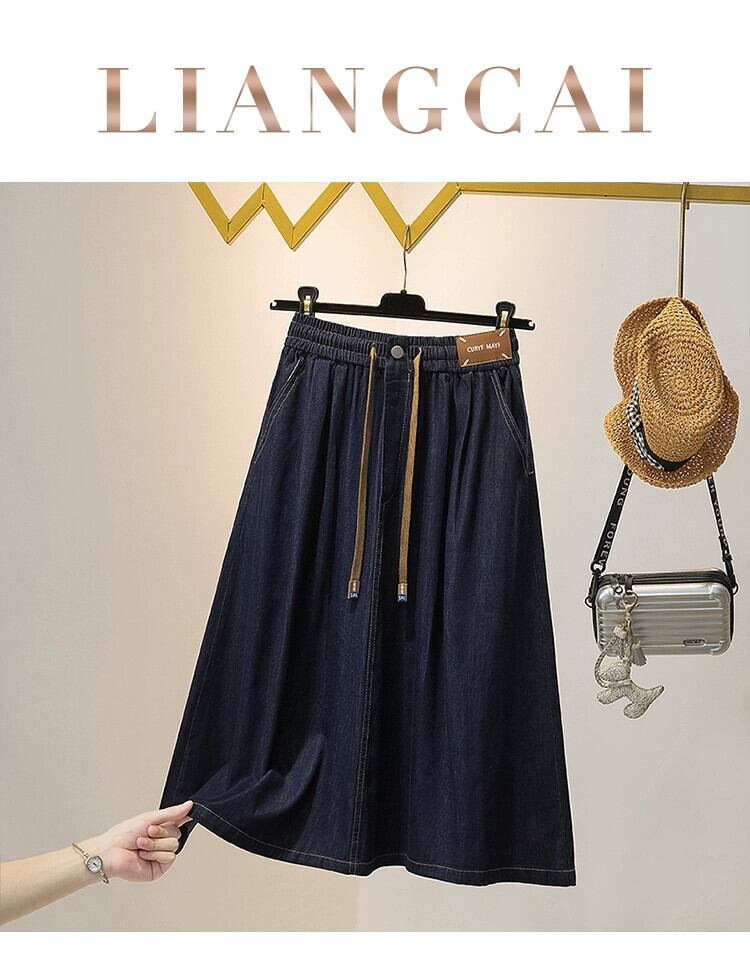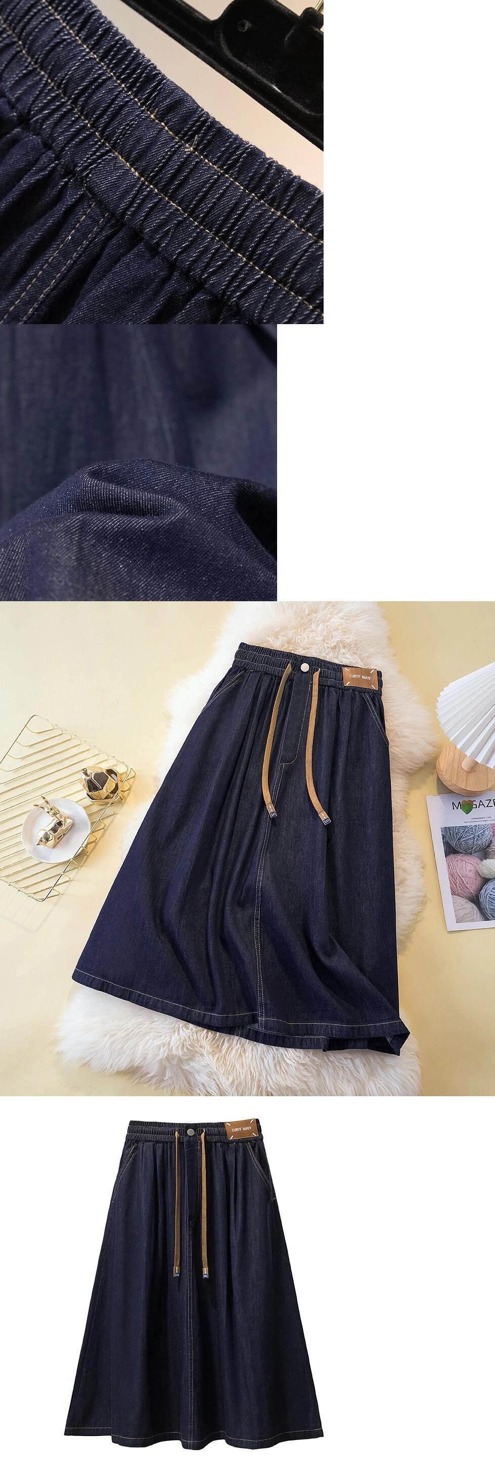 プラスサイズの女性の脂肪 mm 春の新スタイル 2024 弾性ウエストネクタイプリーツデニムスカート股カバーデザインスカート エラスティック 伸縮 大きめサイズ スプリング 春物 8884162279827932
