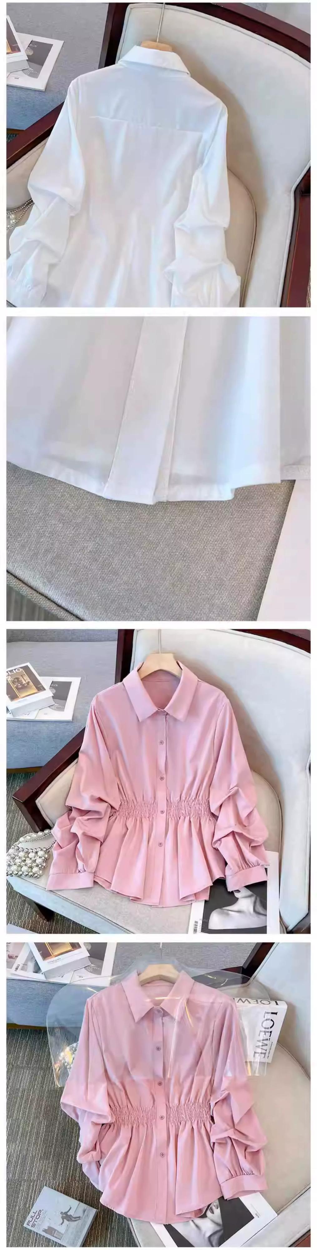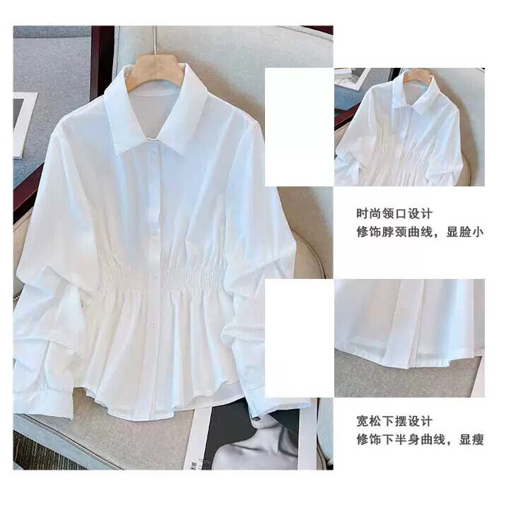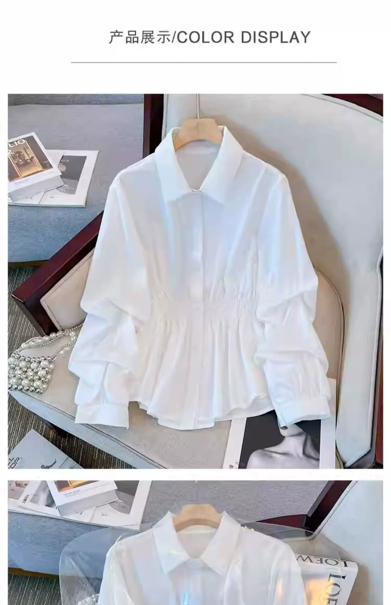 プラスサイズの女性の脂肪ミリメートル春の新スタイル 2024 シックなトップス腹をカバーするプリーツシャツ無地カジュアルシックなトップス 大きめサイズ スプリング 春物 ソリッドカラー 8884194865321676