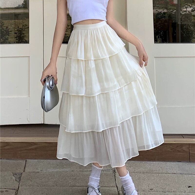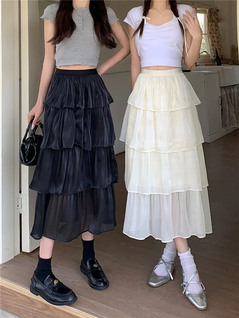 プラスサイズの婦人服ファットミリメートル春の新 2024 ハイエンドサテンケーキスカートミッドレングスハイウエスト痩身 A ラインスカート 大きめサイズ スプリング 春物 Aライン 8884185220272661