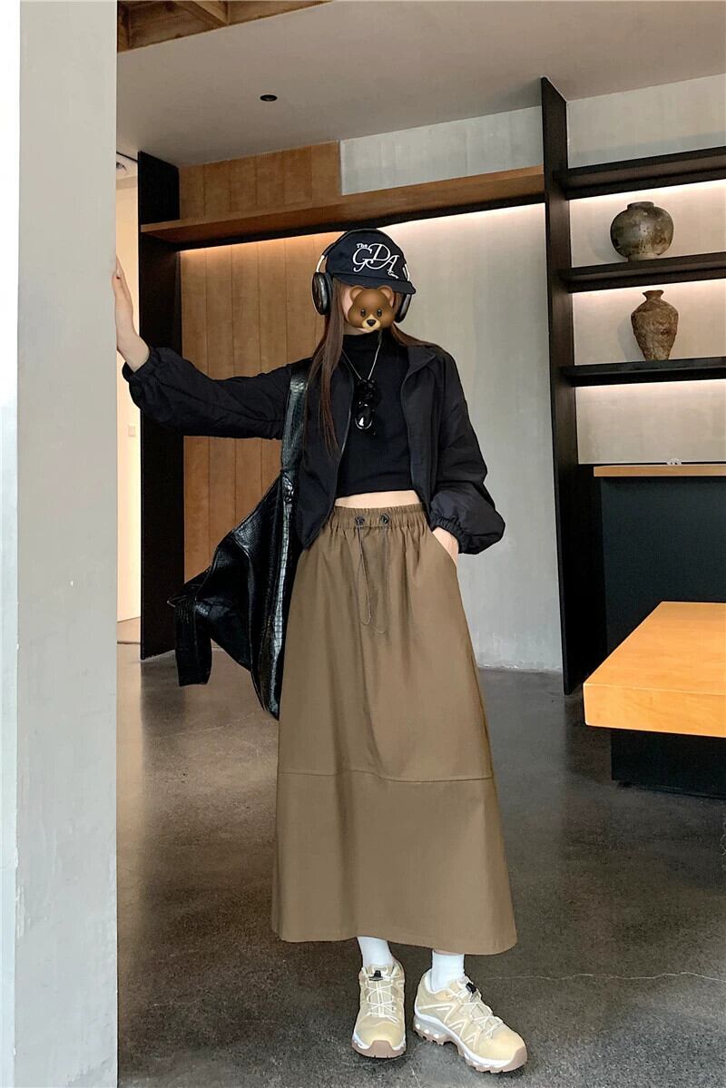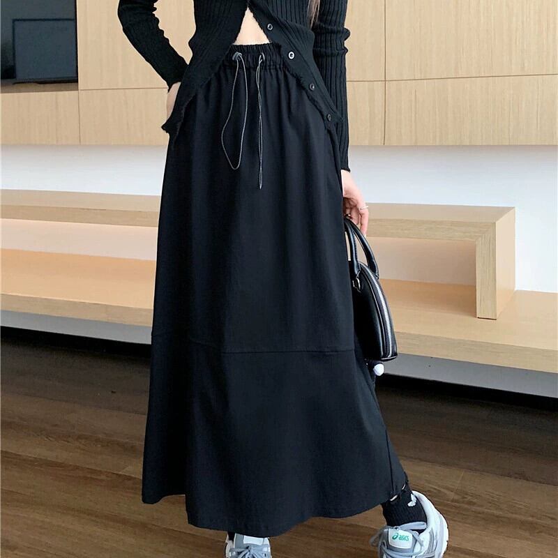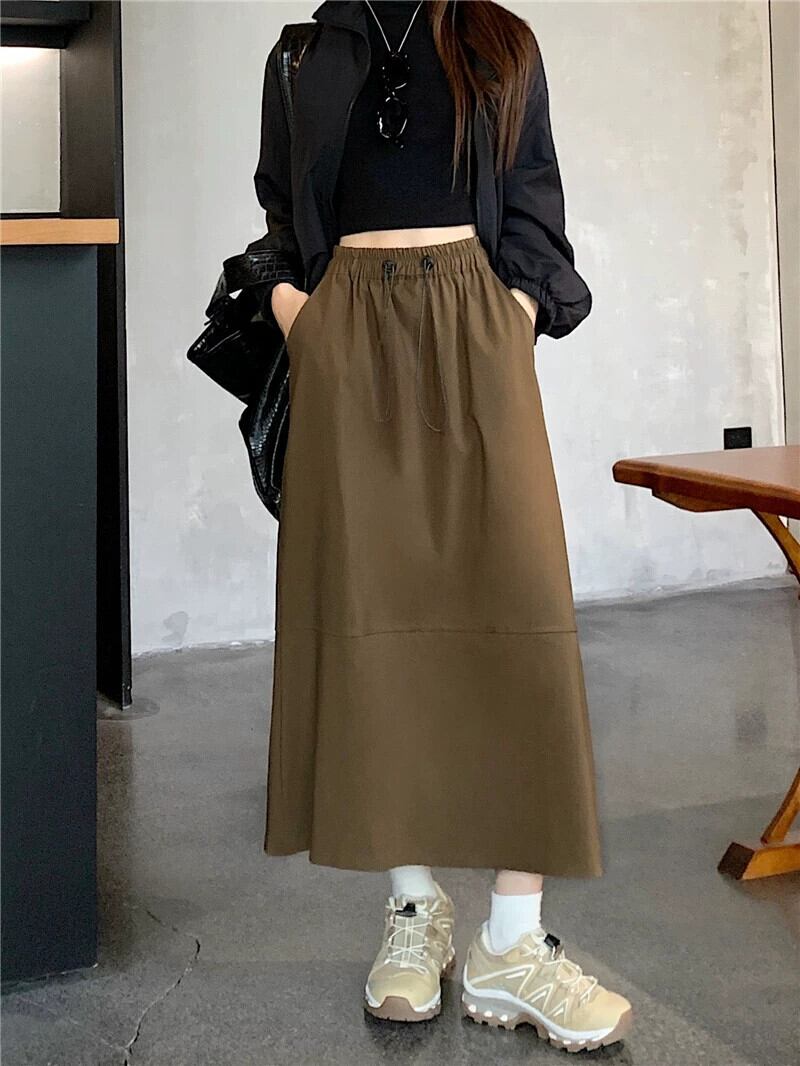 プラスサイズの婦人服ファットミリメートル春の新 2024 作業服スタイルミッドレングススカートスリム巾着 A ラインロングスカート女性 大きめサイズ スプリング 春物 Aライン 8884147324609354