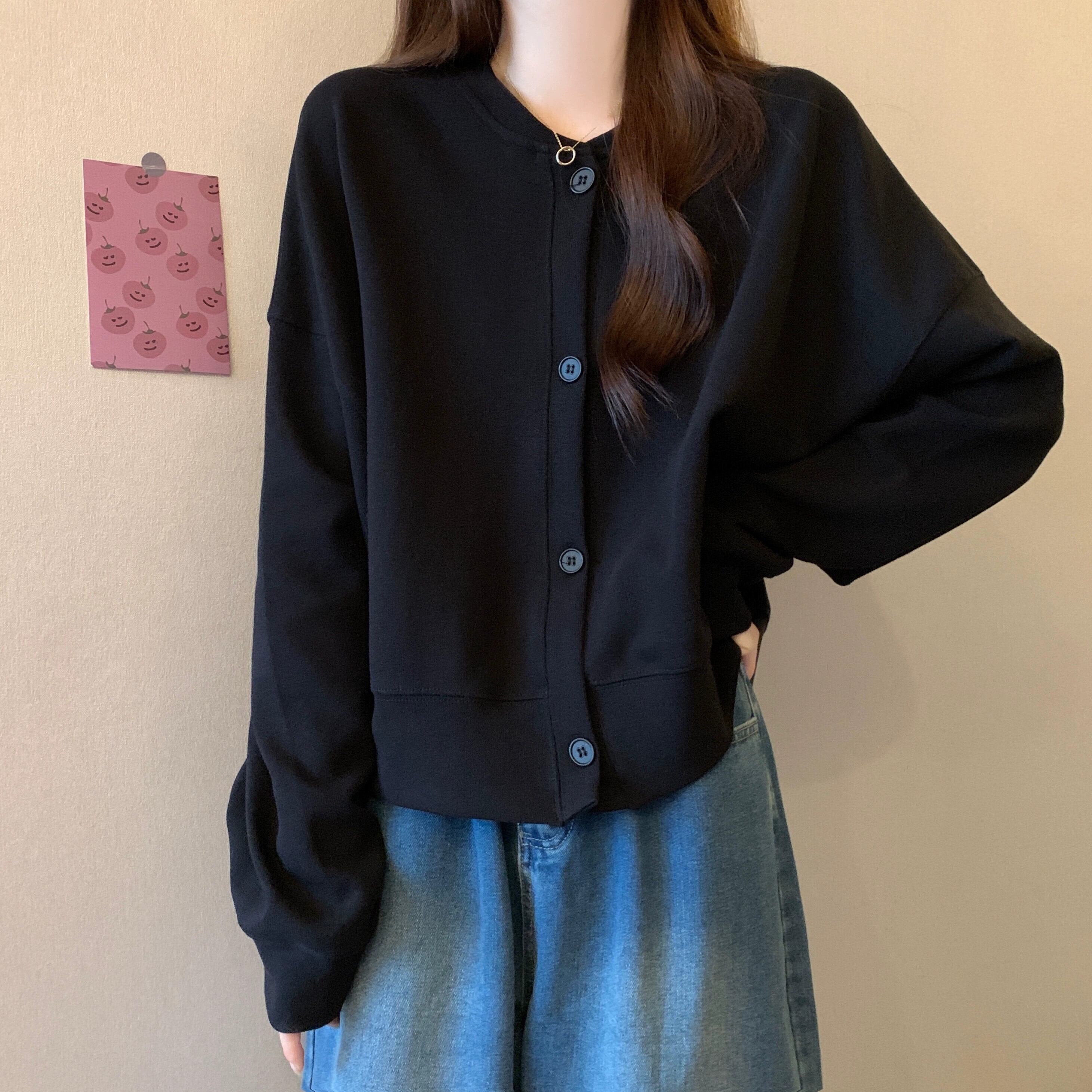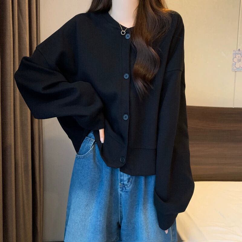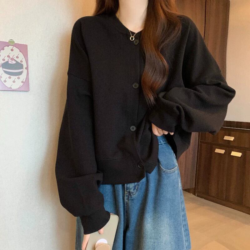 プラスサイズの女性の春スタイルルーズ怠惰なスタイルカーディガンスウェットシャツコート脂肪に見えるスリムスタイル右肩ヨーロッパトップ 大きめサイズ スプリング 春物 ヨーロピアン 8884195841010527