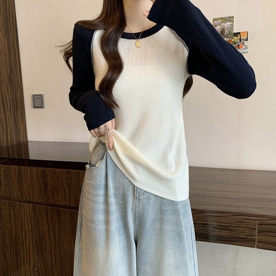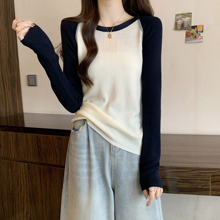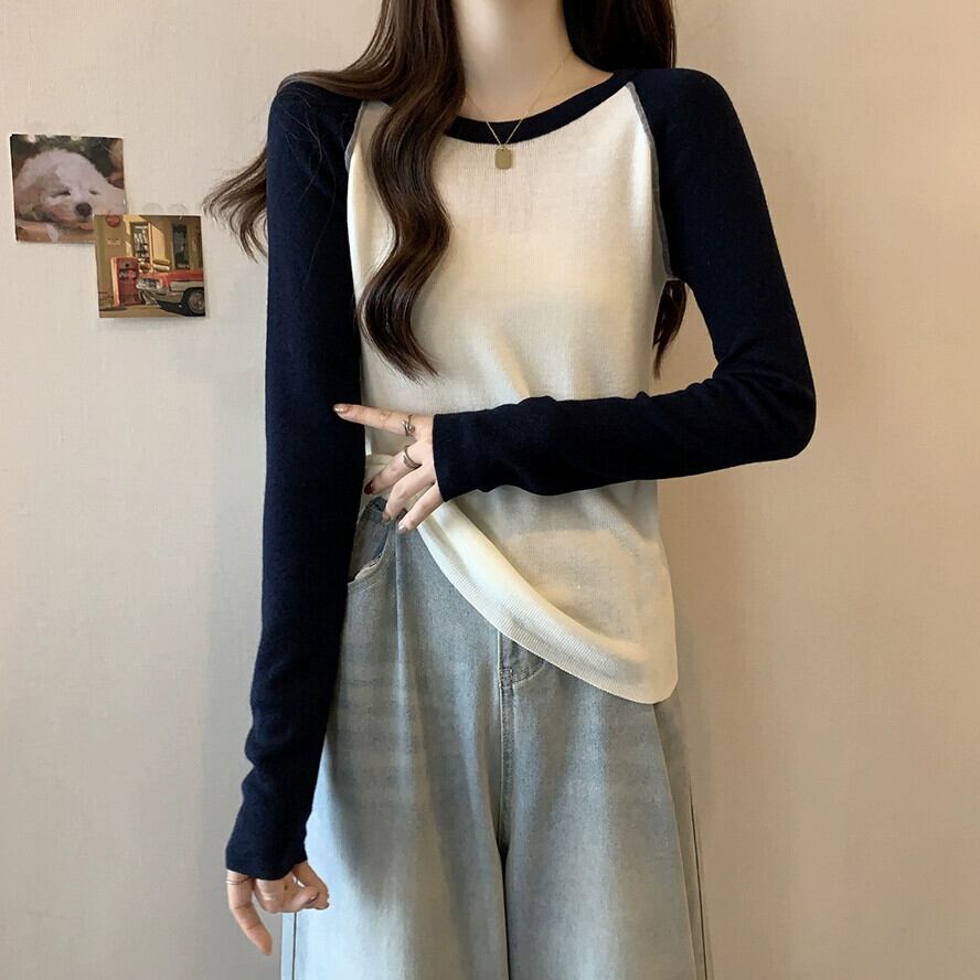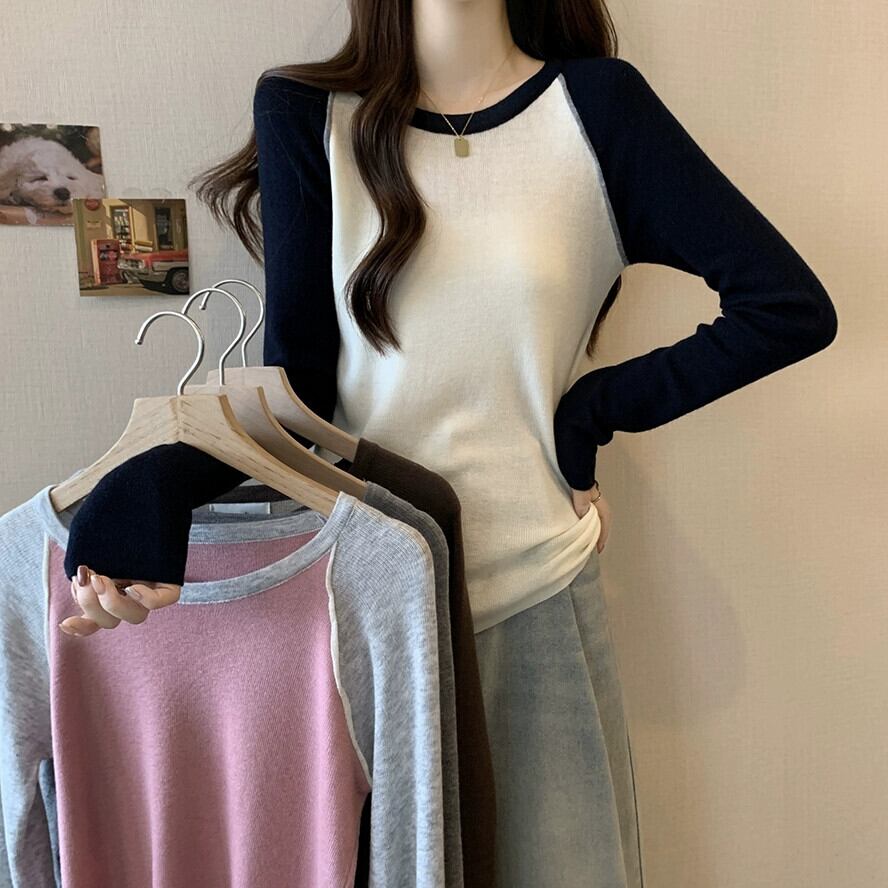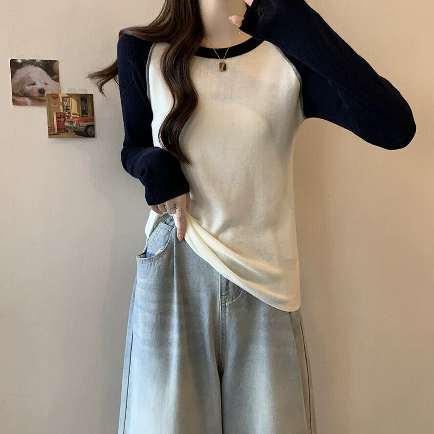 カラーブロック ラグラン スリーブ ハイエンド ボトミング セーター プラス サイズの女性の脂肪 mm 春の新 2024 スリム レトロ トップ 大きめサイズ スプリング 春物 8884118929666093