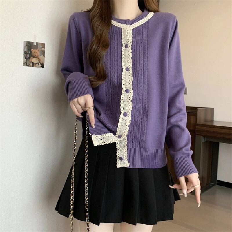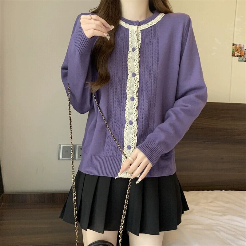 プラスサイズの婦人服脂肪 mm 春の新スタイル 2024 気質レーススプライシングセーター痩身ボディカバーシックなトップ女性 大きめサイズ スプリング 春物 8884159867680059