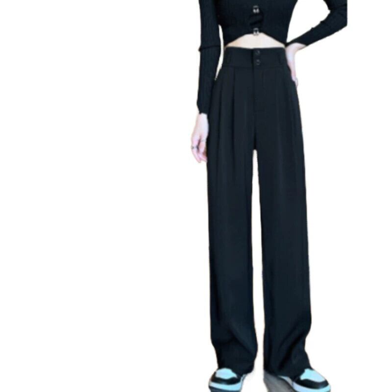 黒のスーツパンツ 2024 春の新スタイルのハイウエスト痩身狭いワイドレッグパンツルーズドレープ多目的フロアレングスパンツ女性 ブラック スプリング 春物 8884134215877288