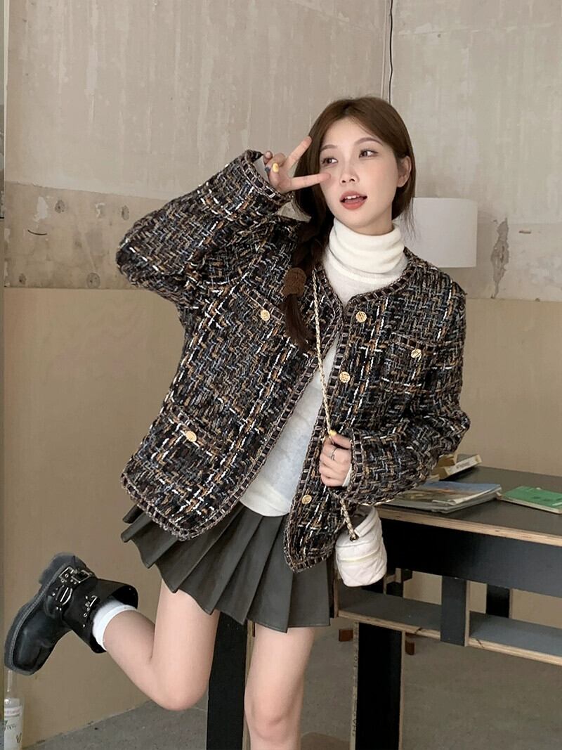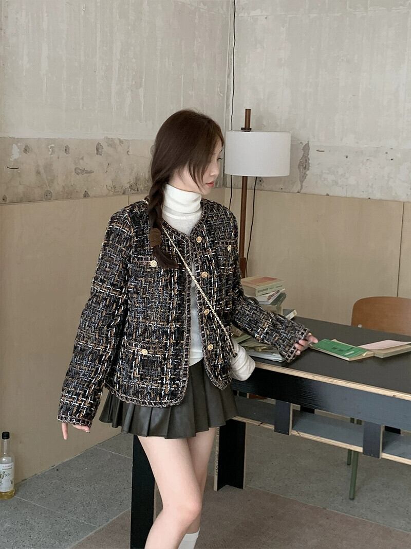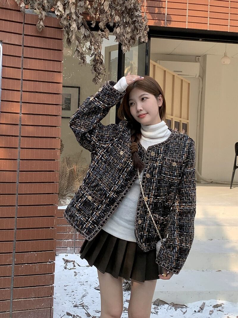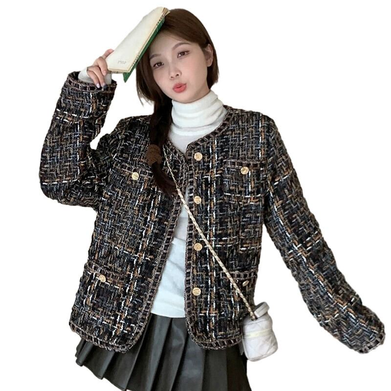 プラスサイズの婦人服 2024 流行の春の新ファットシスター綿肥厚ハイエンドジャケット気質ツイードショートトップ コットン 大きめサイズ スプリング 春物 8884143087927120