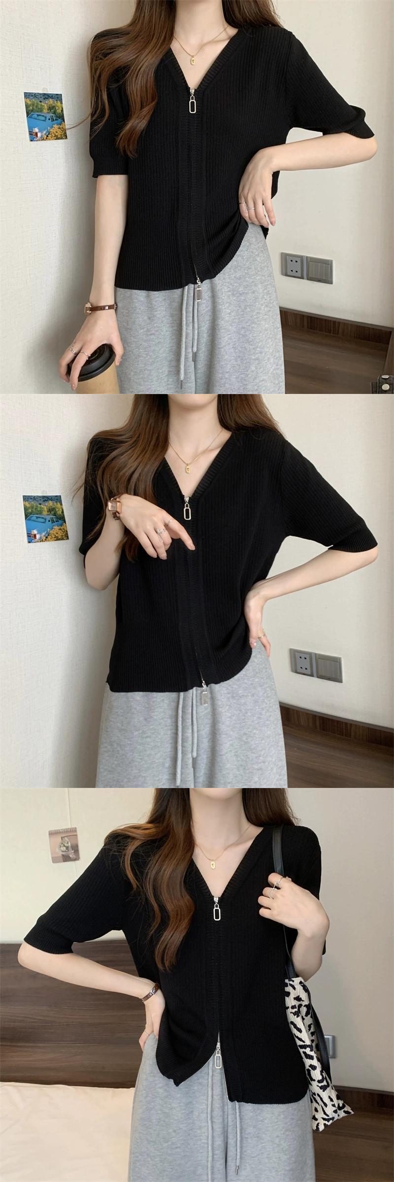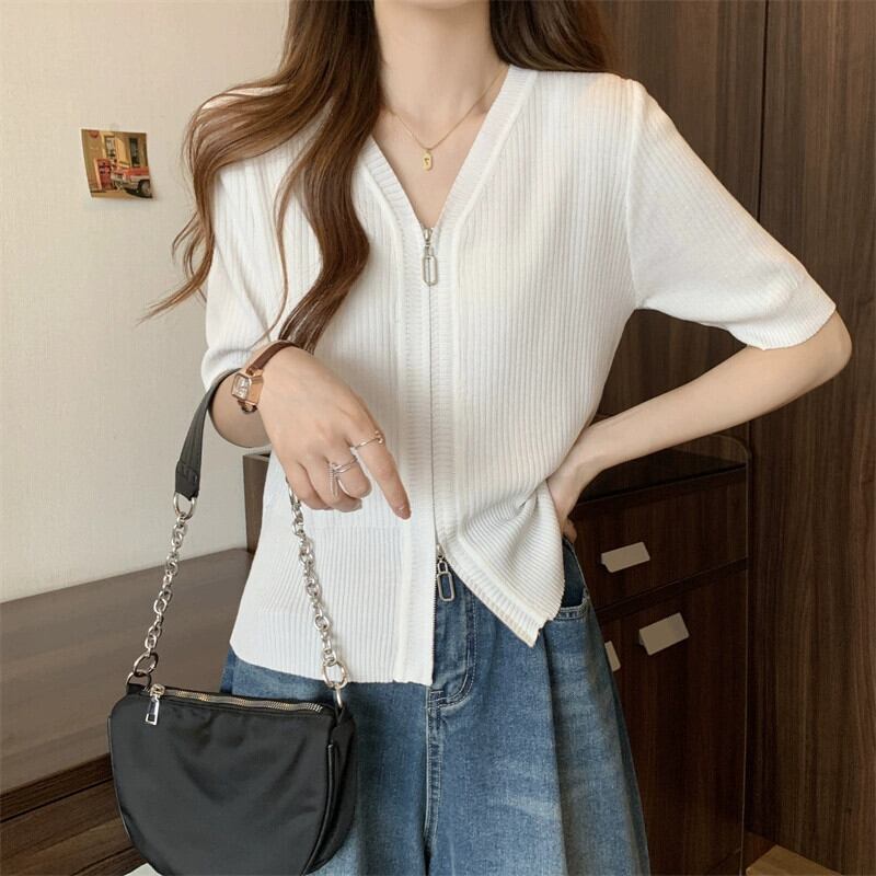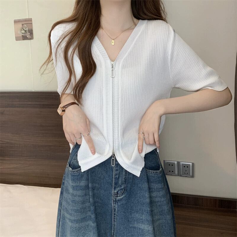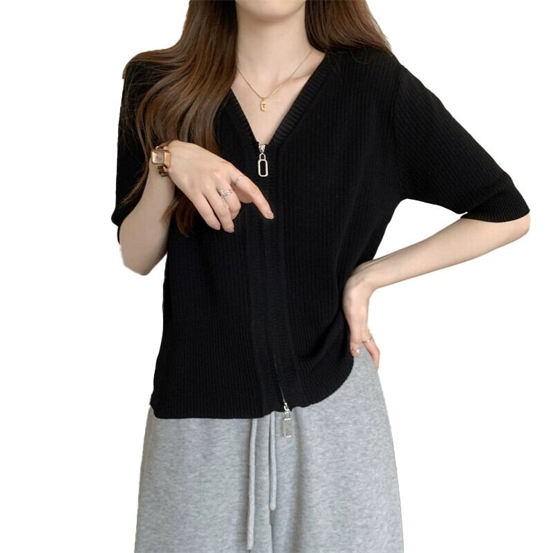 女性の脂肪夏のファッションアイスシルクスリムダブルカーディガン Tシャツフレンチ半袖ボトシャツシックなトップ サマー 夏物 8884115458002579