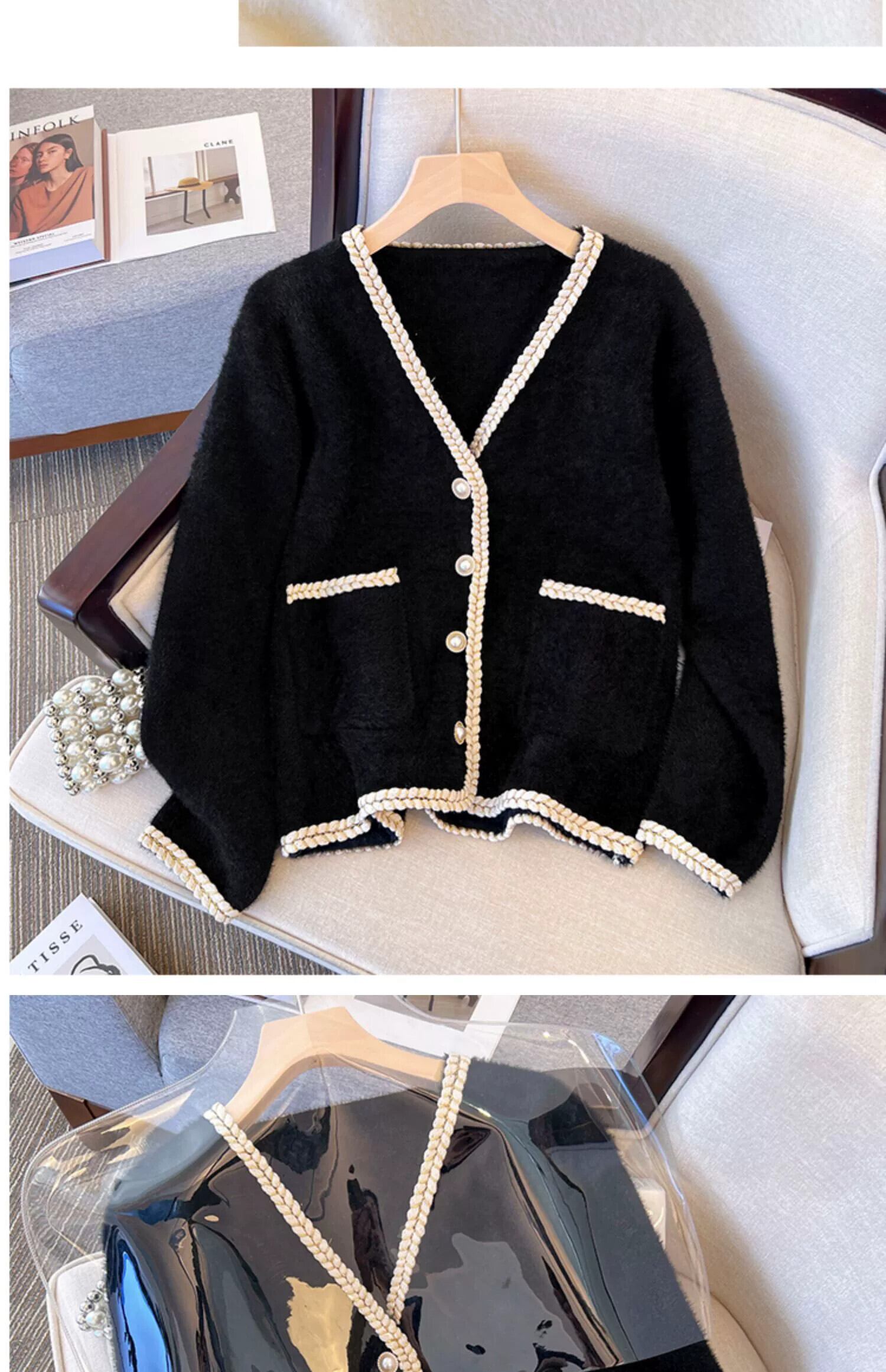 プラスサイズの春の新女性のソリッドカラー V ネックトップファット MM ファッション多目的ミンクベルベットカーディガンセータージャケットトレンディな 大きめサイズ スプリング 春物 Vネック 8884171488441081