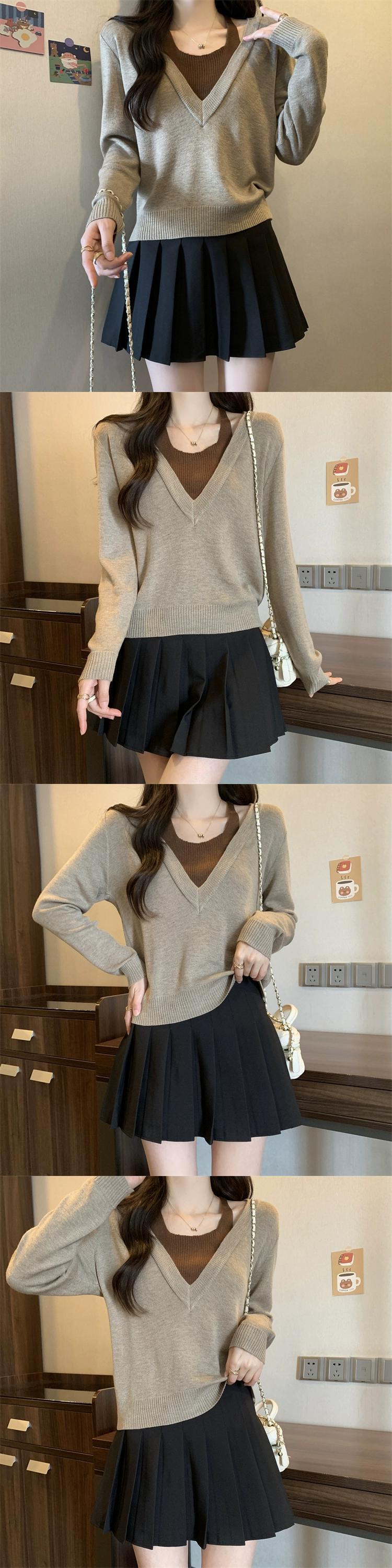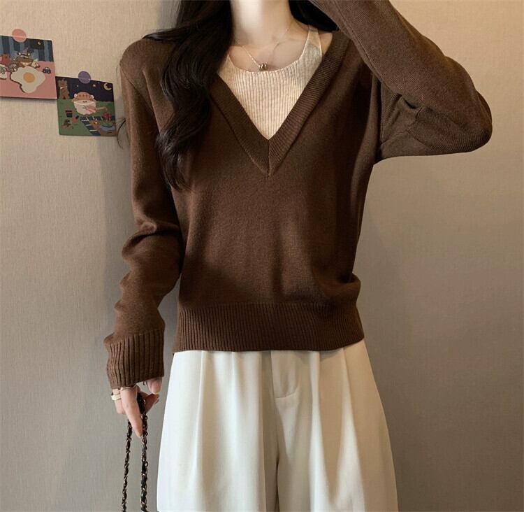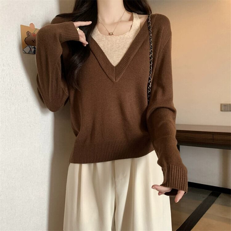プラスサイズの婦人服ファット mm 春の新スタイル 2024 ハイエンドニッチフェイクツーピース多用途セータースリミングトップトレンド 大きめサイズ スプリング 春物 8884117949384146