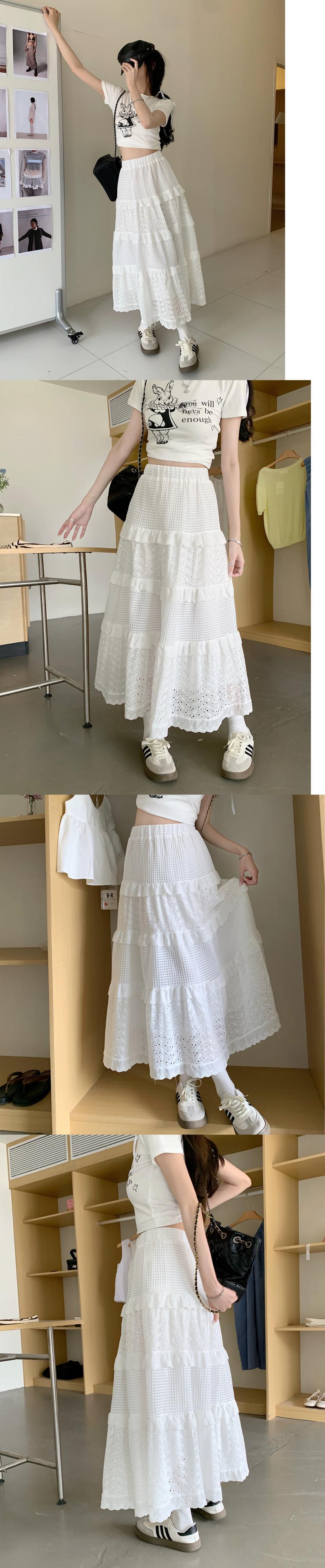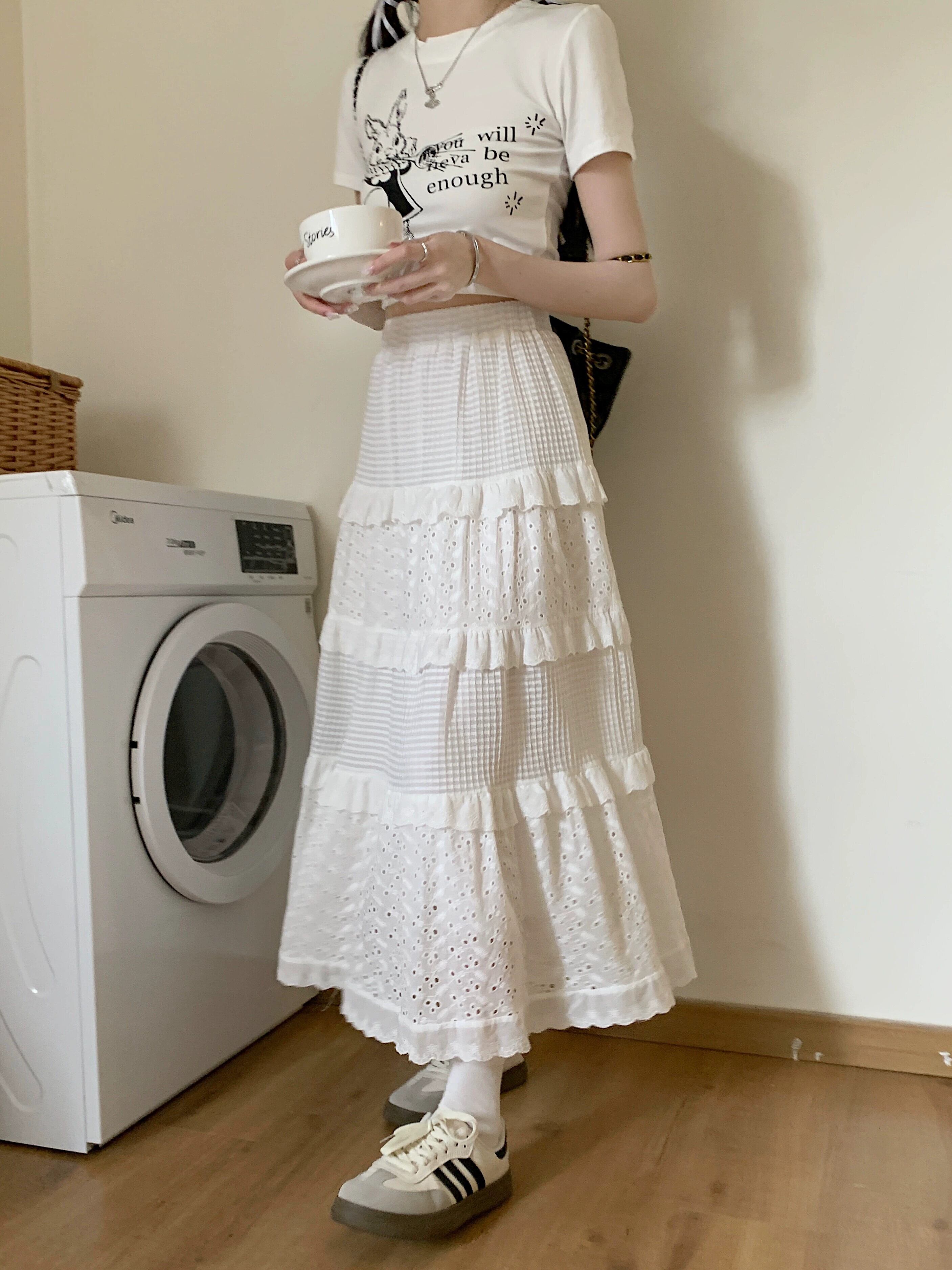 大きいサイズハイウエストAライン白スカートデザインニッチレースケーキスカート太mm洋梨体型ロングスカート ホワイト 大きめサイズ 8884136766124193