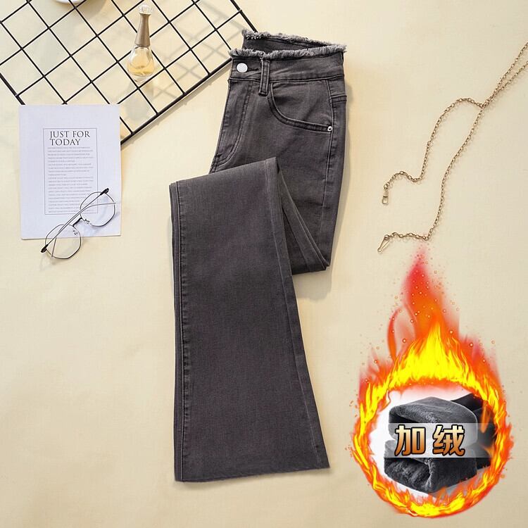 ショッピングモールクリアランスプラスサイズの女性の春ハイウエスト弾性ワンピースフリースジーンズ女性のフレアパンツ レッド エラスティック 伸縮 大きめサイズ スプリング 春物 8884124500424030