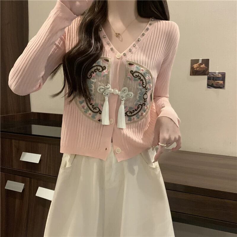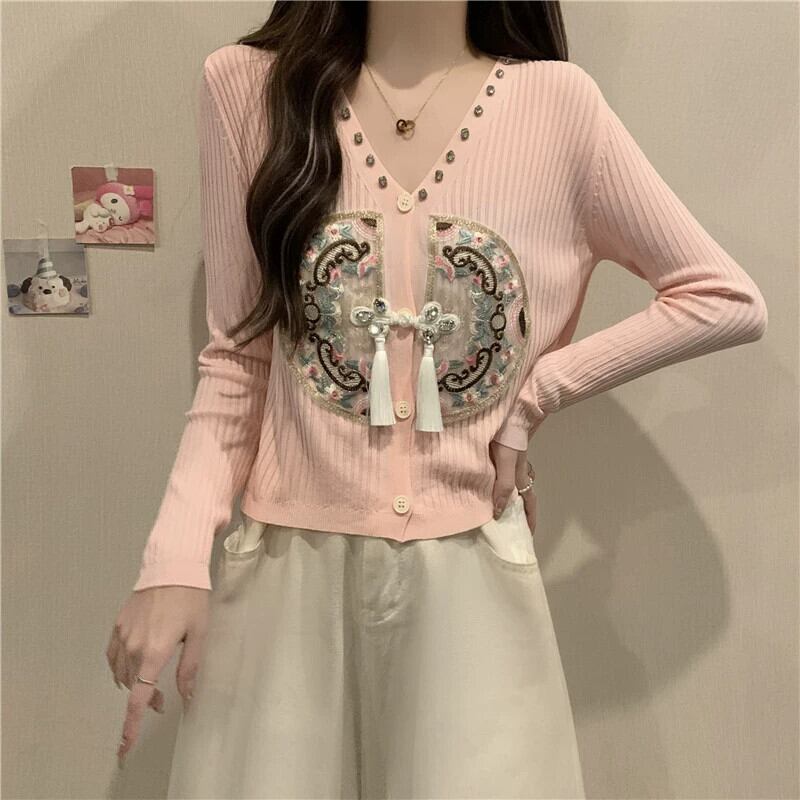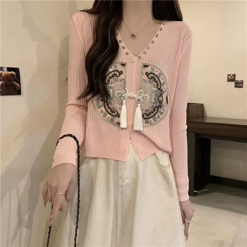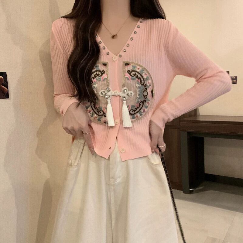 プラスサイズの婦人服脂肪 mm 春の新スタイル 2024 新しい中国風の重工業セータースリム気質多用途刺繍トップス レッド 大きめサイズ スプリング 春物 8884184909863207