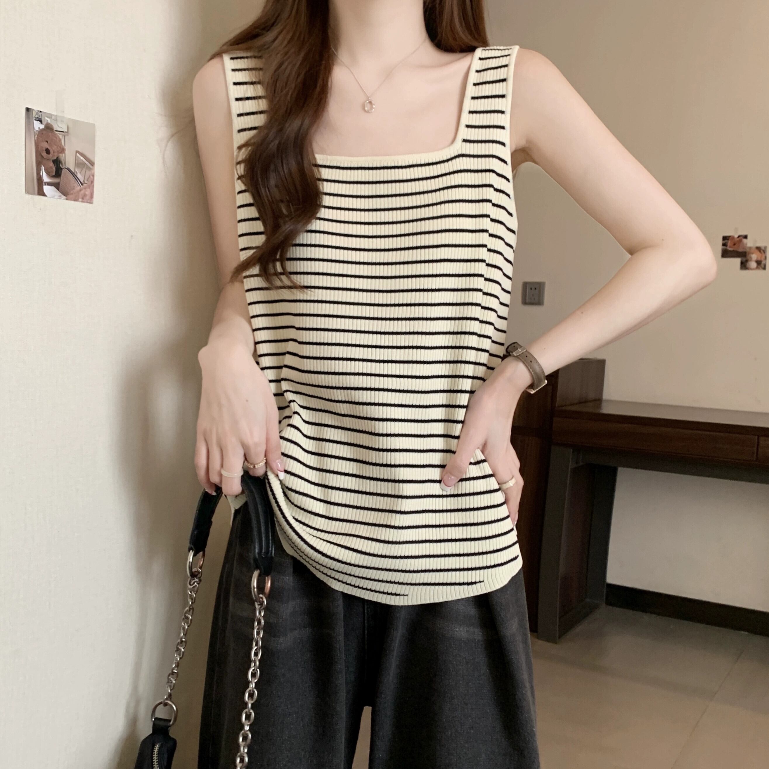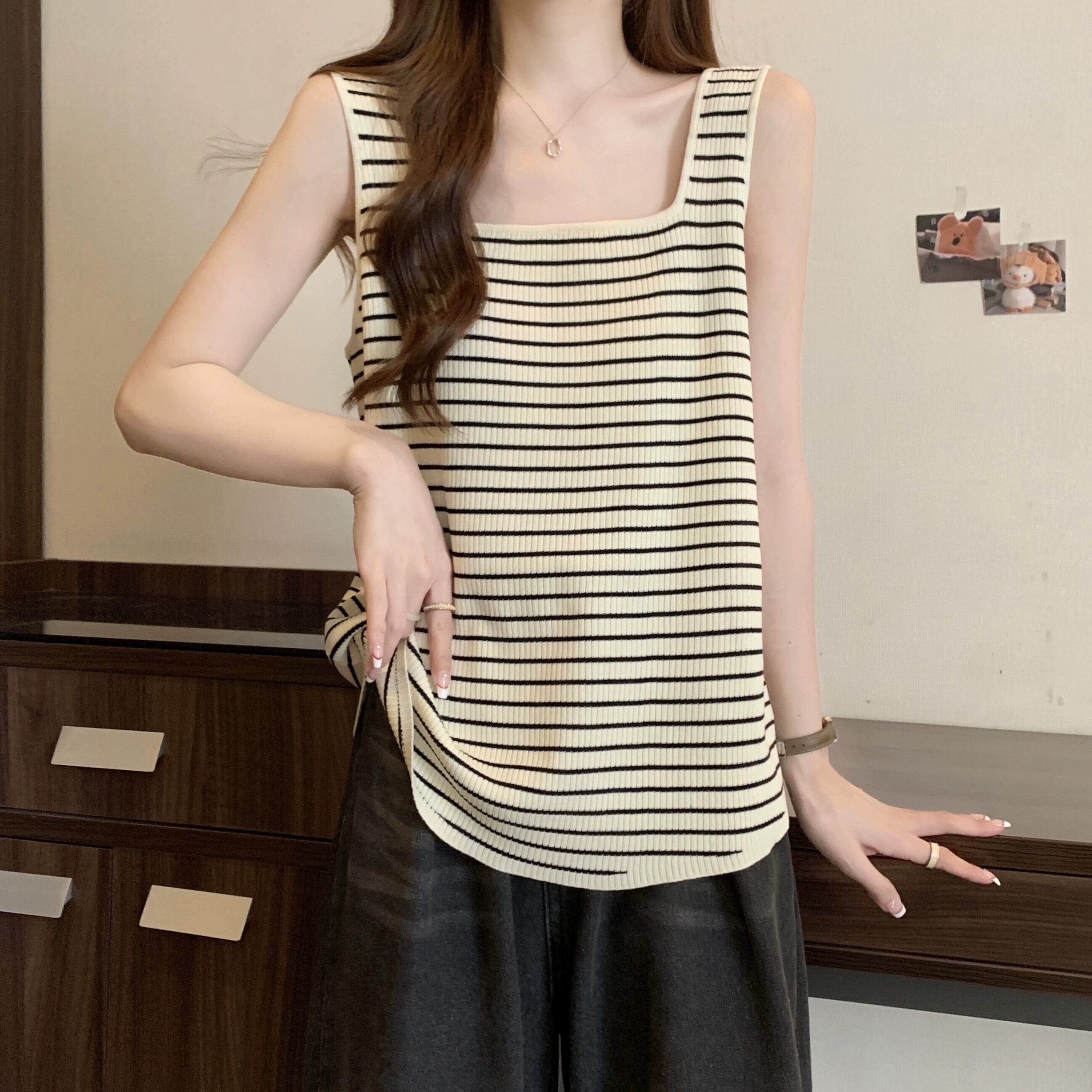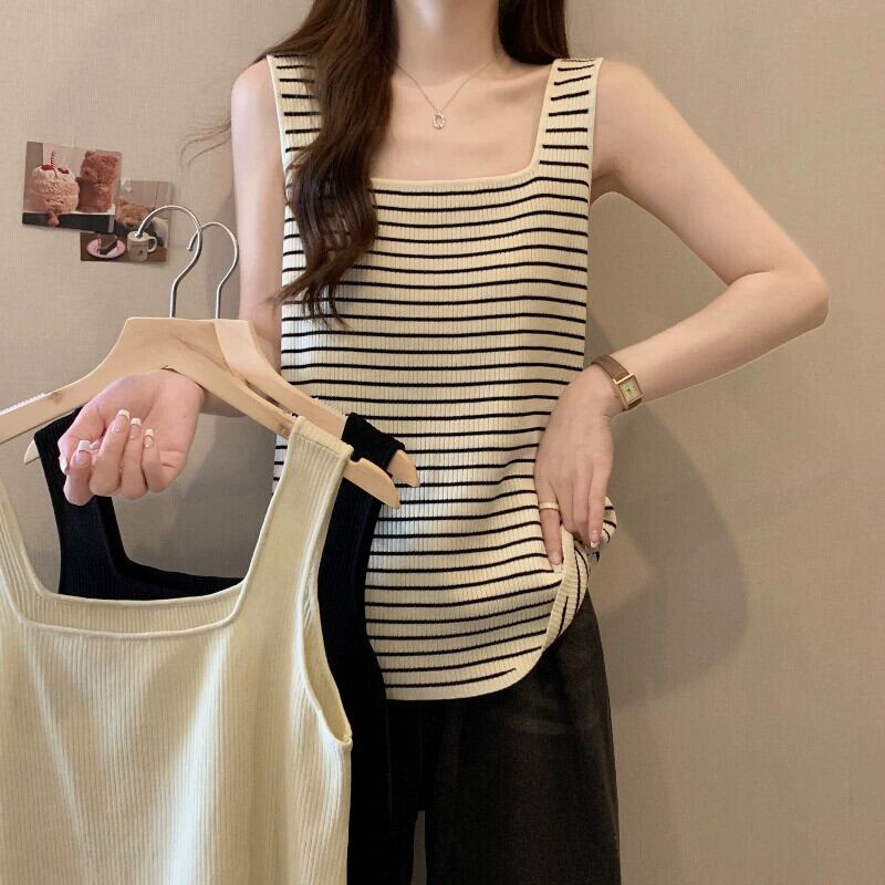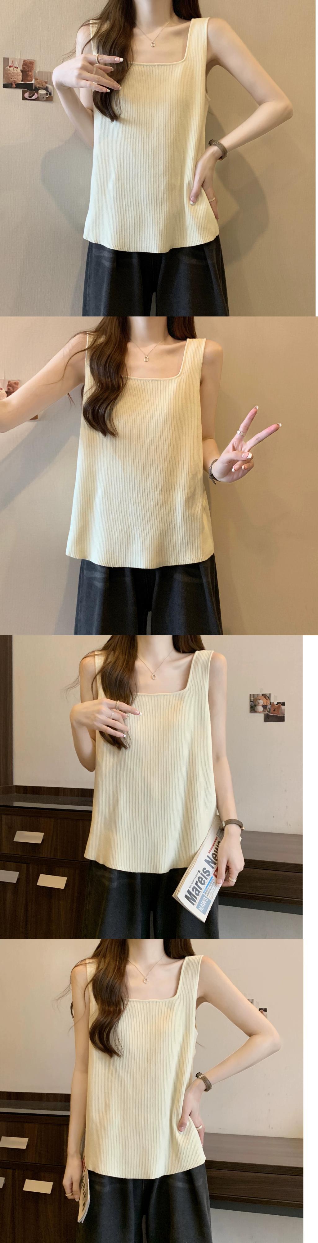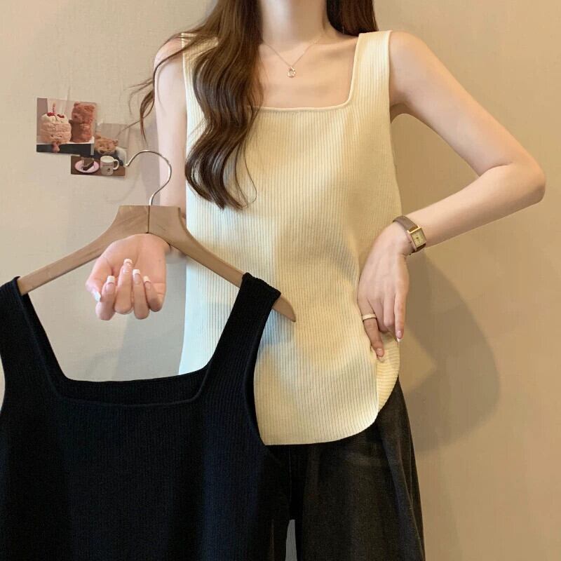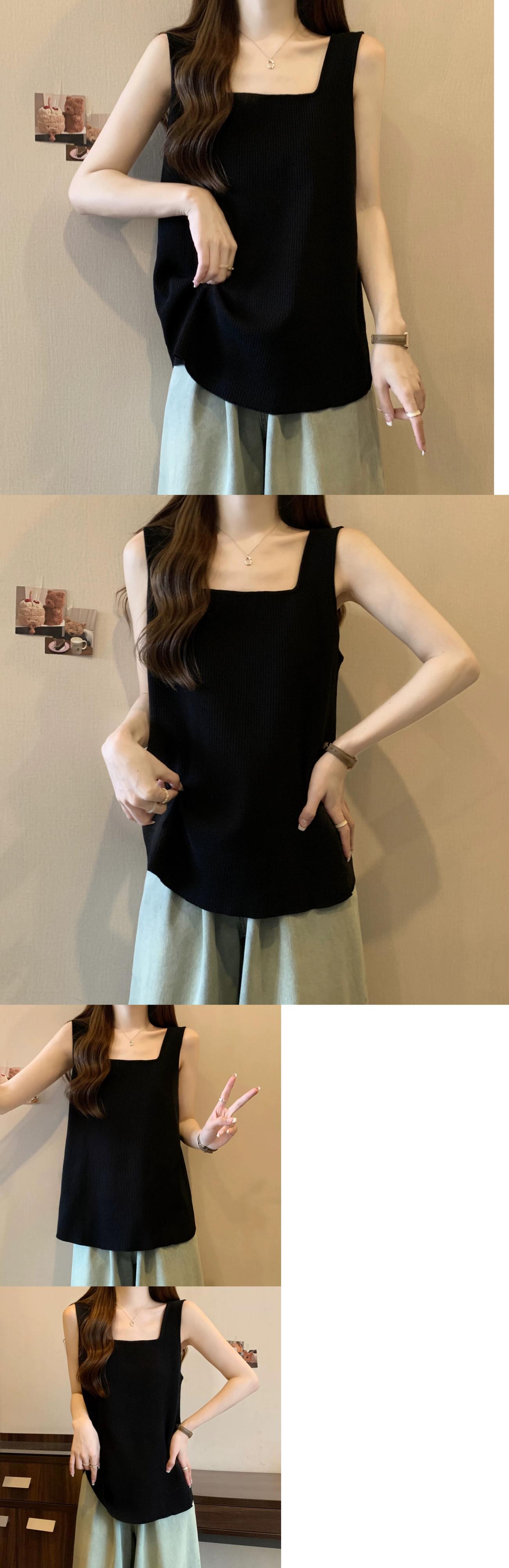 プラスサイズの婦人服 2024 春の新スタイルのファット MM ファッショナブルな幅広ショルダー ストラップで肉の四角い襟をカバーし、痩身ニット ベスト トレンディです。 大きめサイズ スプリング 春物 スクウェア ワイドショルダー 8884179096586140