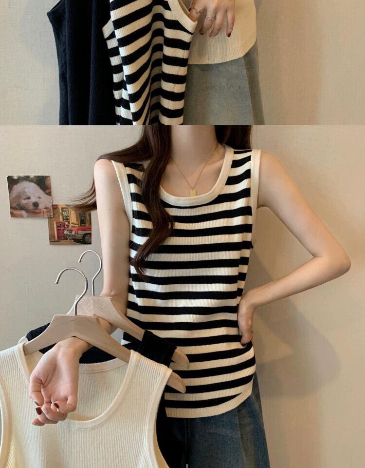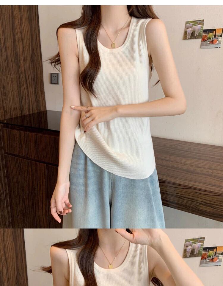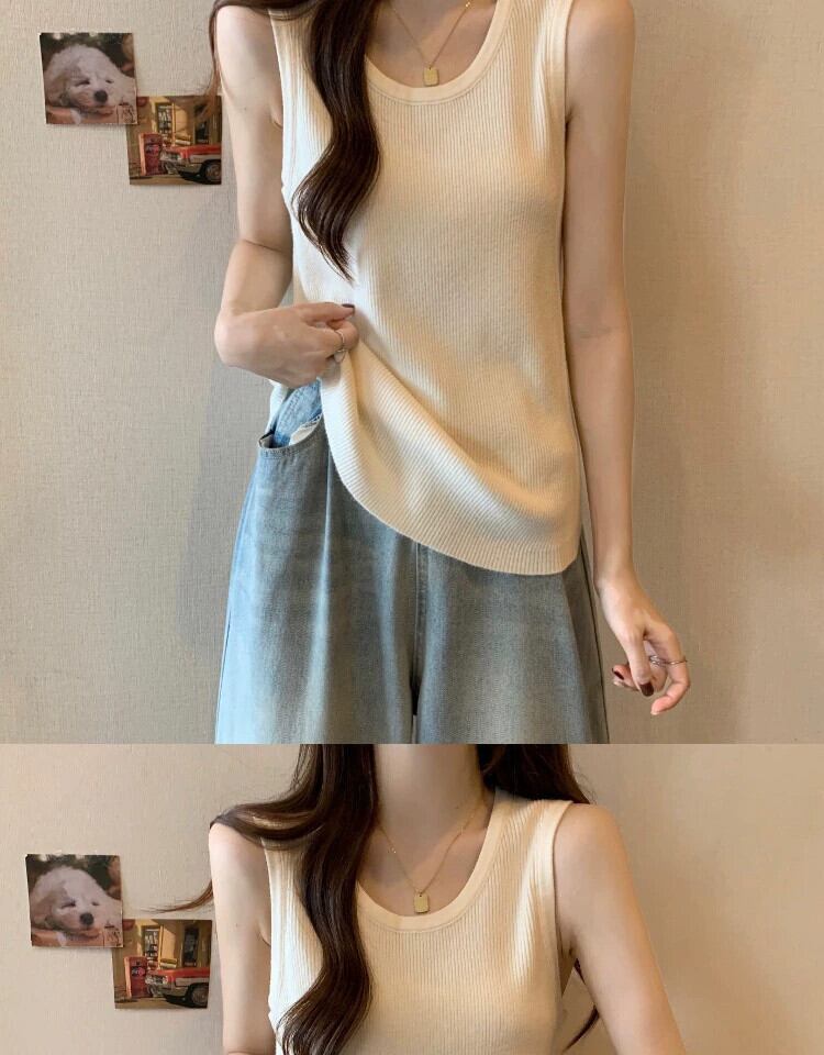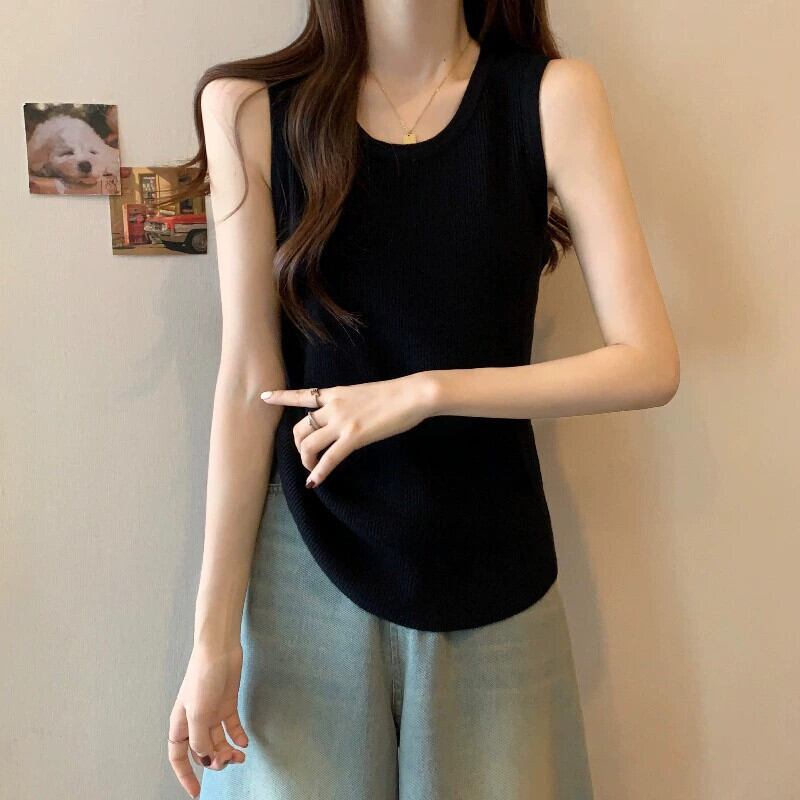 プラスサイズの女性の夏の 2024 新しいファッション多用途右肩ラウンドネック底緩い痩身ノースリーブニットベスト 大きめサイズ サマー 夏物 Oネック 8884136260628595