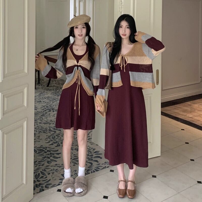 色:シングルカーディガンジャケット,シングルドローストリングジャケット,シングルショートホルターネックサスペンダースカート,シングル丈のレギュラーサスペンダースカート