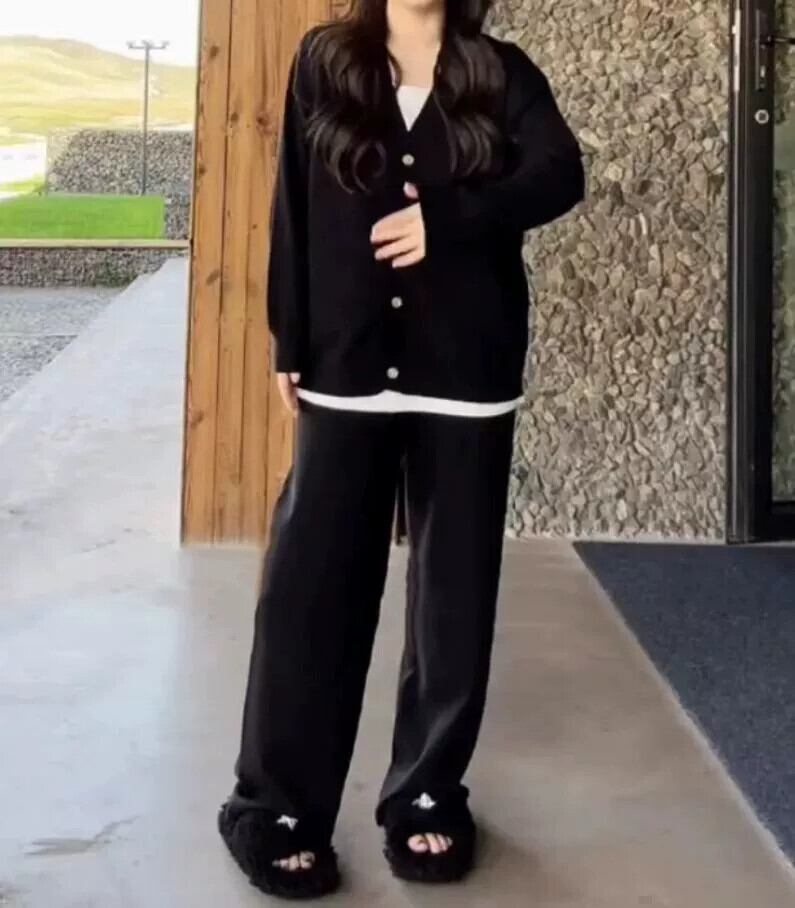 プラスサイズの女性の偽ツーピースセーター春先の新しい太ったmmは肉をカバーし、スリムに見え、柔らかくワックスのようなワイドレッグパンツスーツ 大きめサイズ スプリング 春物 8884113209087337