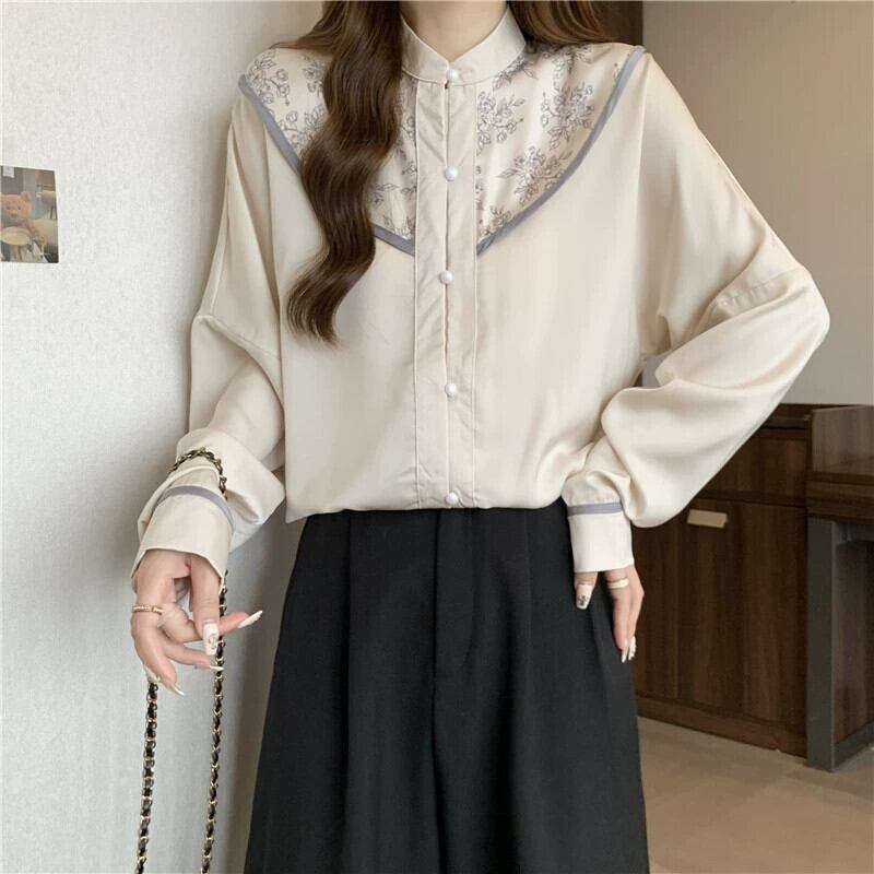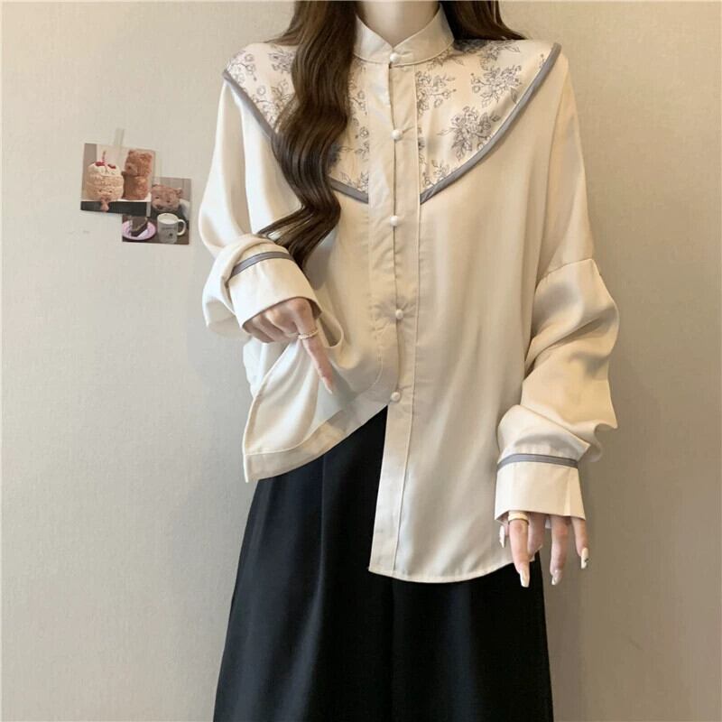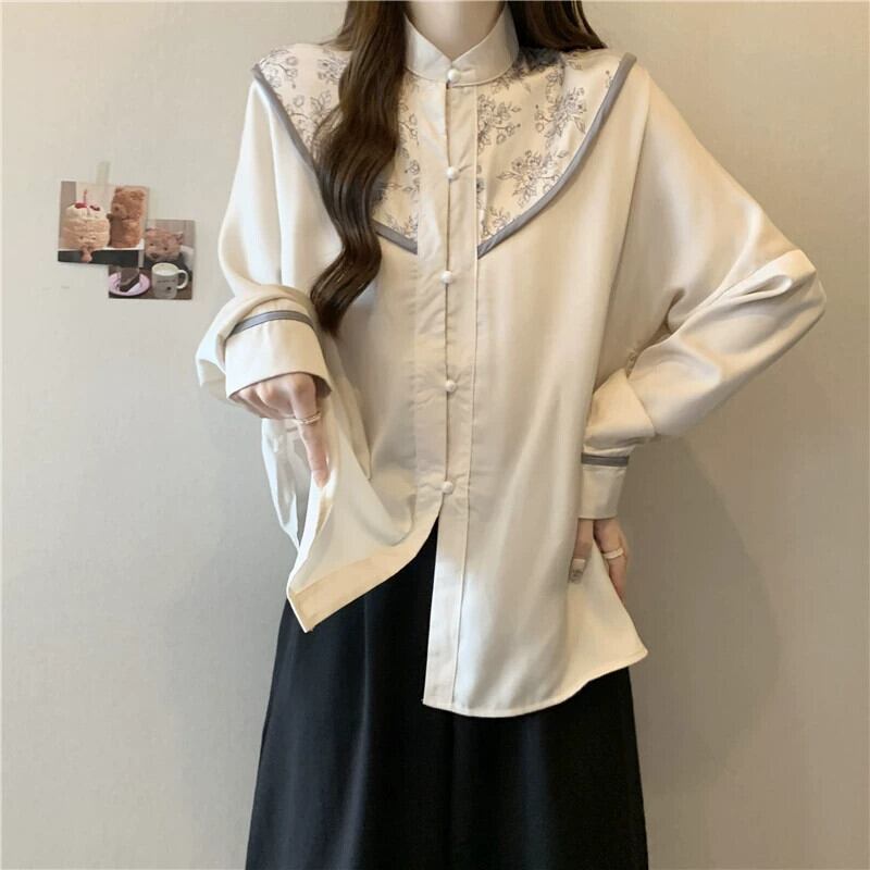 プラスサイズの女性の脂肪 mm 春の新スタイル 2024 長袖新中国スリムシャツ国民スタイル多目的腹カバートップ ロング 大きめサイズ スプリング 春物 8884138606656321