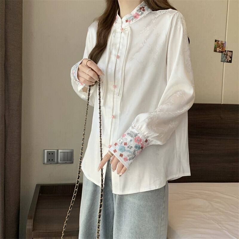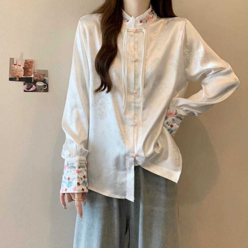 プラスサイズの婦人服ファット mm 春の新 2024 中国風スタンドカラー シャツファッショナブルな気質緩い年齢を減らすトップス トレンド 大きめサイズ スプリング 春物 8884139837840228