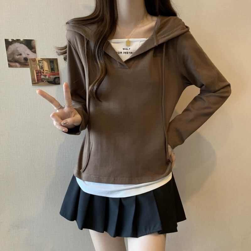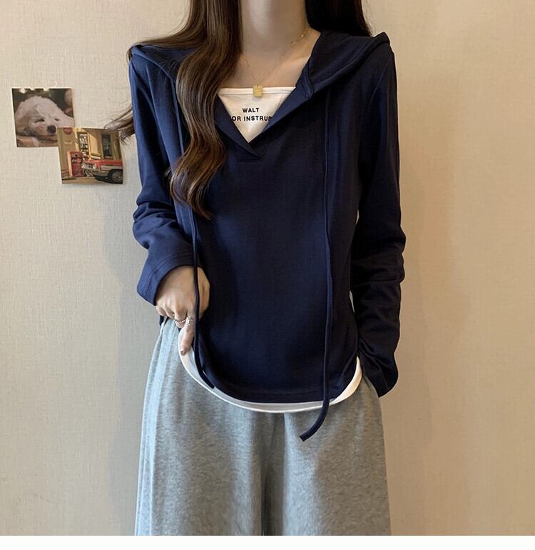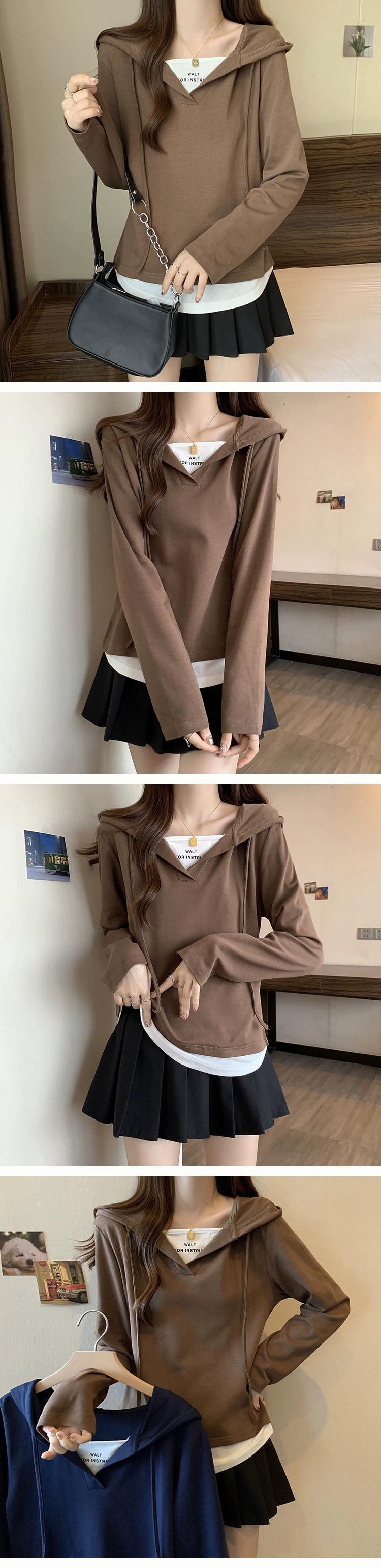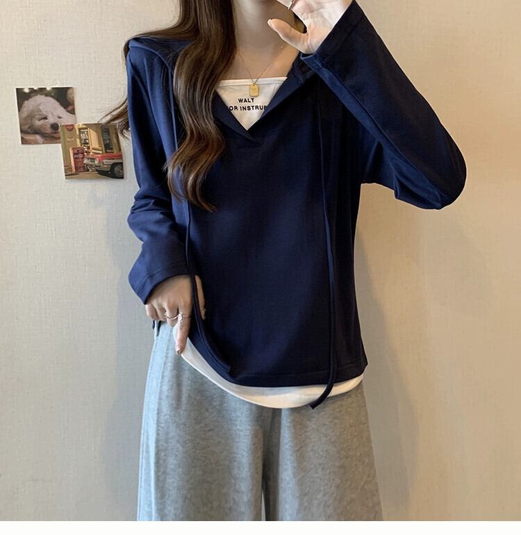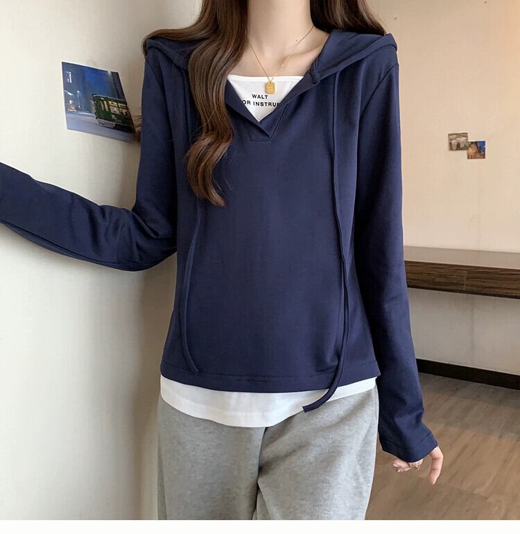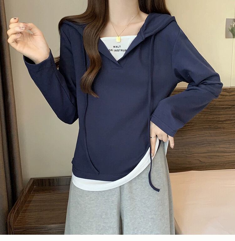 プラスサイズの女性の脂肪 mm 春の新スタイル 2024 ファッショナブルなフード付きフェイクツーピースセーターカラーマッチングカジュアル多目的トップ 大きめサイズ スプリング 春物 8884142573875533