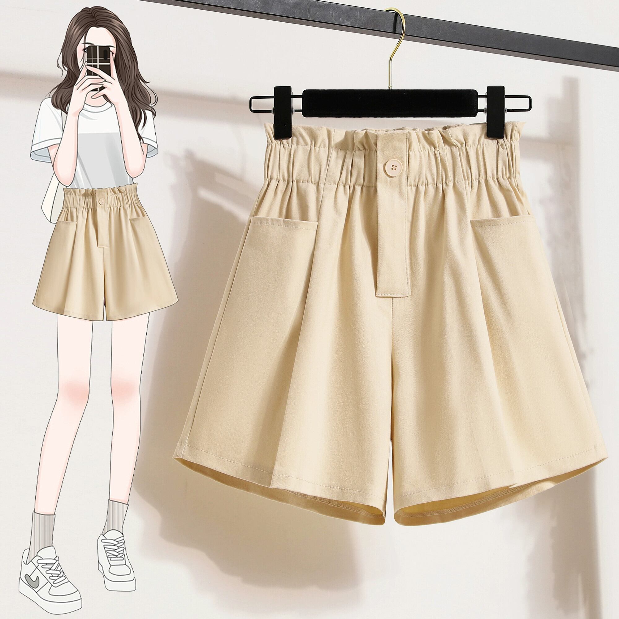 プラスサイズの女性の脂肪 mm 夏の新しいスタイル 2024 弾性ウエストプリーツワイドレッグパンツ、シックなファッショナブルなデザインのカジュアルパンツ エラスティック 伸縮 大きめサイズ サマー 夏物 ワイドパンツ 8884185030231189