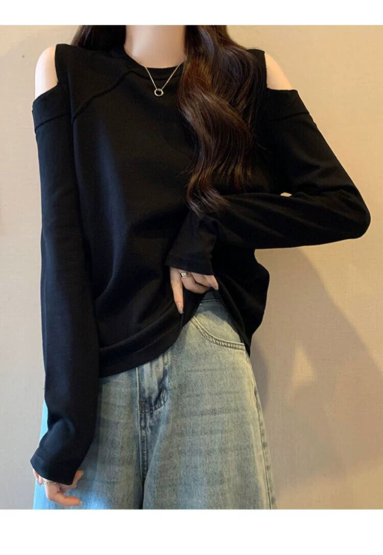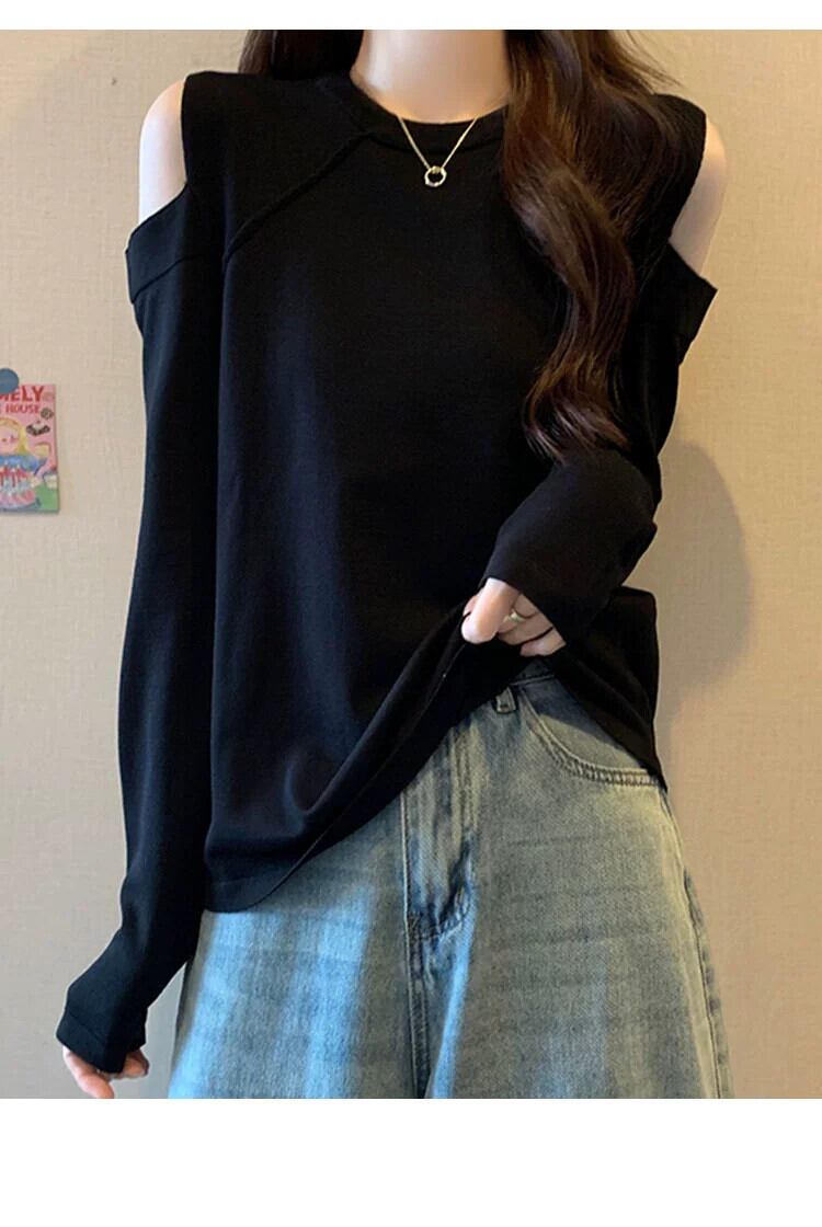 プラスサイズの女性の脂肪 mm 春の新しいスタイル 2024 デザインオフショルダー無地セータールーズ多目的ニッチトップス 大きめサイズ スプリング 春物 ソリッドカラー 8884194901656469