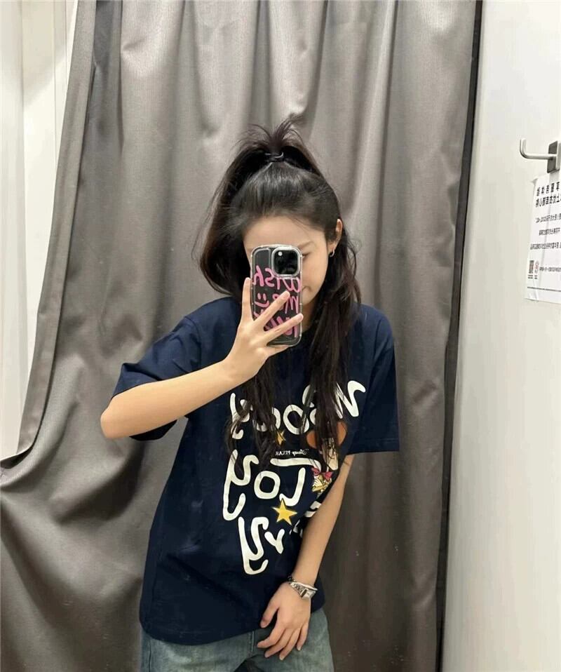 プラスサイズの婦人服ファットミリメートル春の新スタイル 2024 ヘビーニッチプリントバックバッグ襟半袖スリム Tシャツトップス女性 大きめサイズ スプリング 春物 8884195841263835
