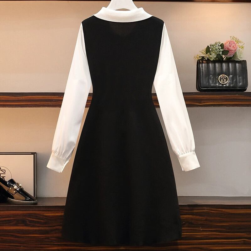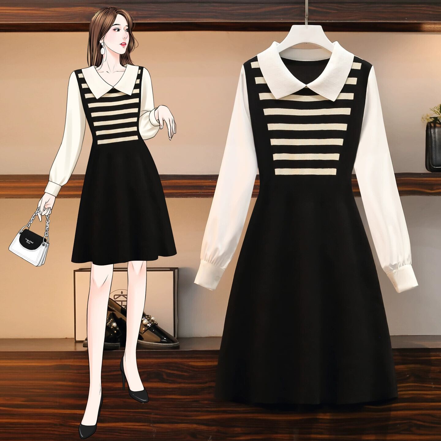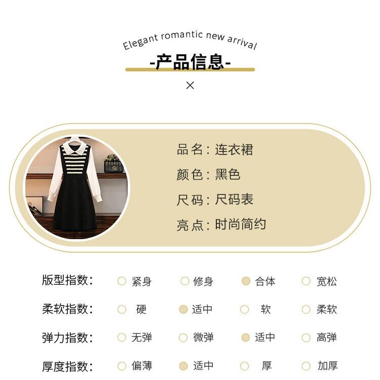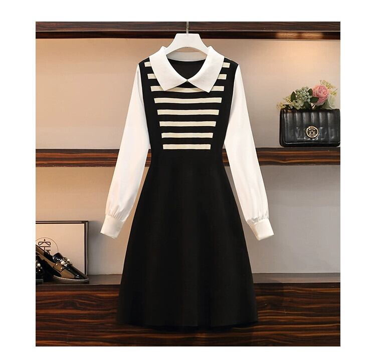 プラスサイズの女性の脂肪 mm 春の新しいスタイル 2024 バージョン偽ツーピース A ライン スカート股間をカバーするストライプ デザインのドレス 大きめサイズ スプリング 春物 Aライン 8884158701179003