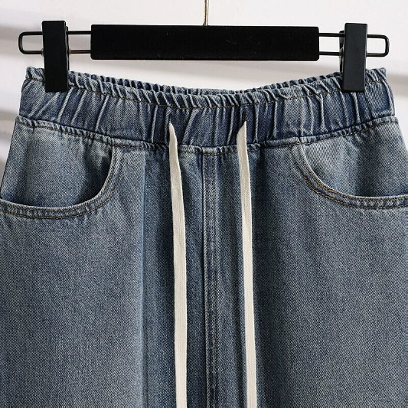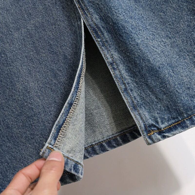 プラスサイズの婦人服ファットミリメートル春の新スタイル 2024 弾性ウエスト A ラインデニムスカートスリットカジュアルデニムスカートトレンド エラスティック 伸縮 大きめサイズ スプリング 春物 Aライン 8884159512923845