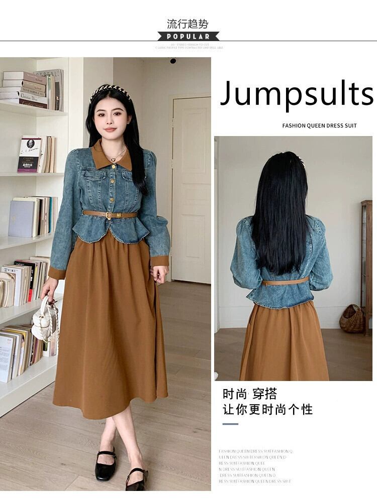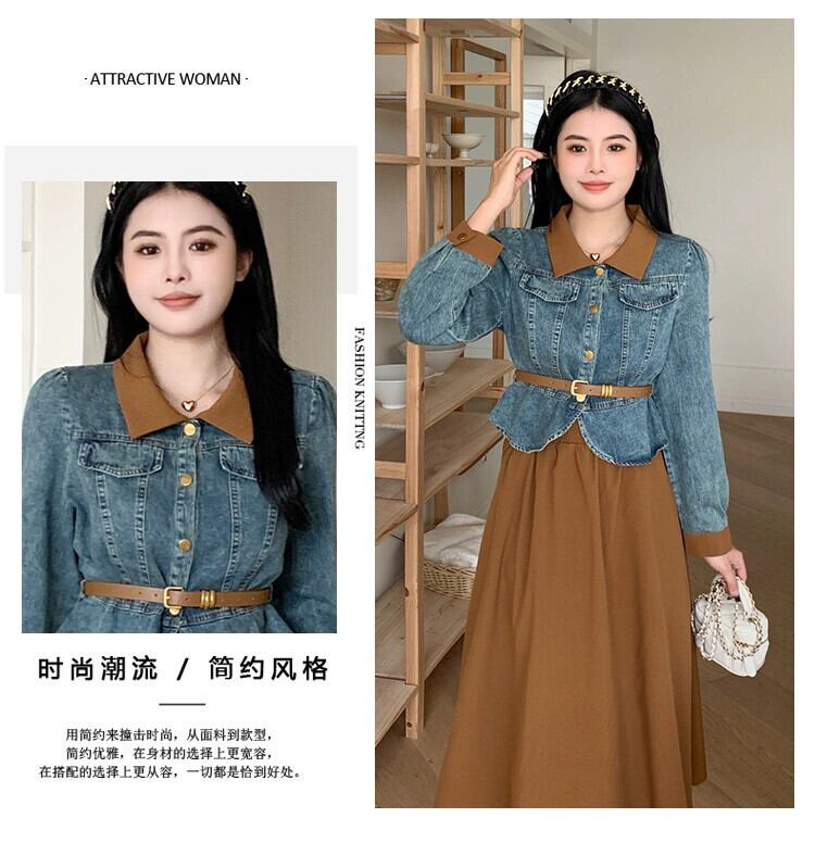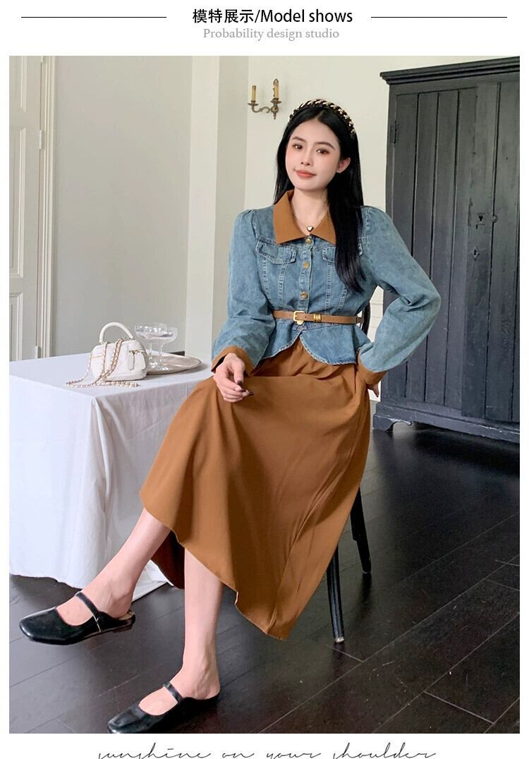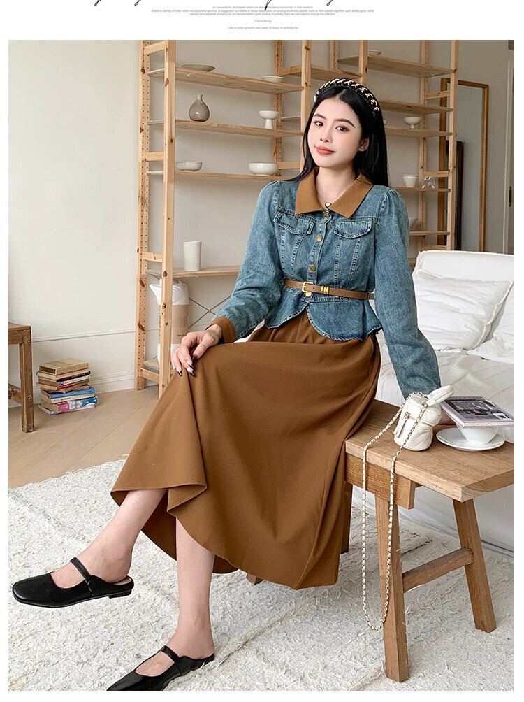 プラスサイズの女性の脂肪ミリメートル春の新スタイル 2024 ウエスト痩身デニムジャケット弾性ウエストスカートファッションスーツ エラスティック 伸縮 大きめサイズ スプリング 春物 8884135930550212